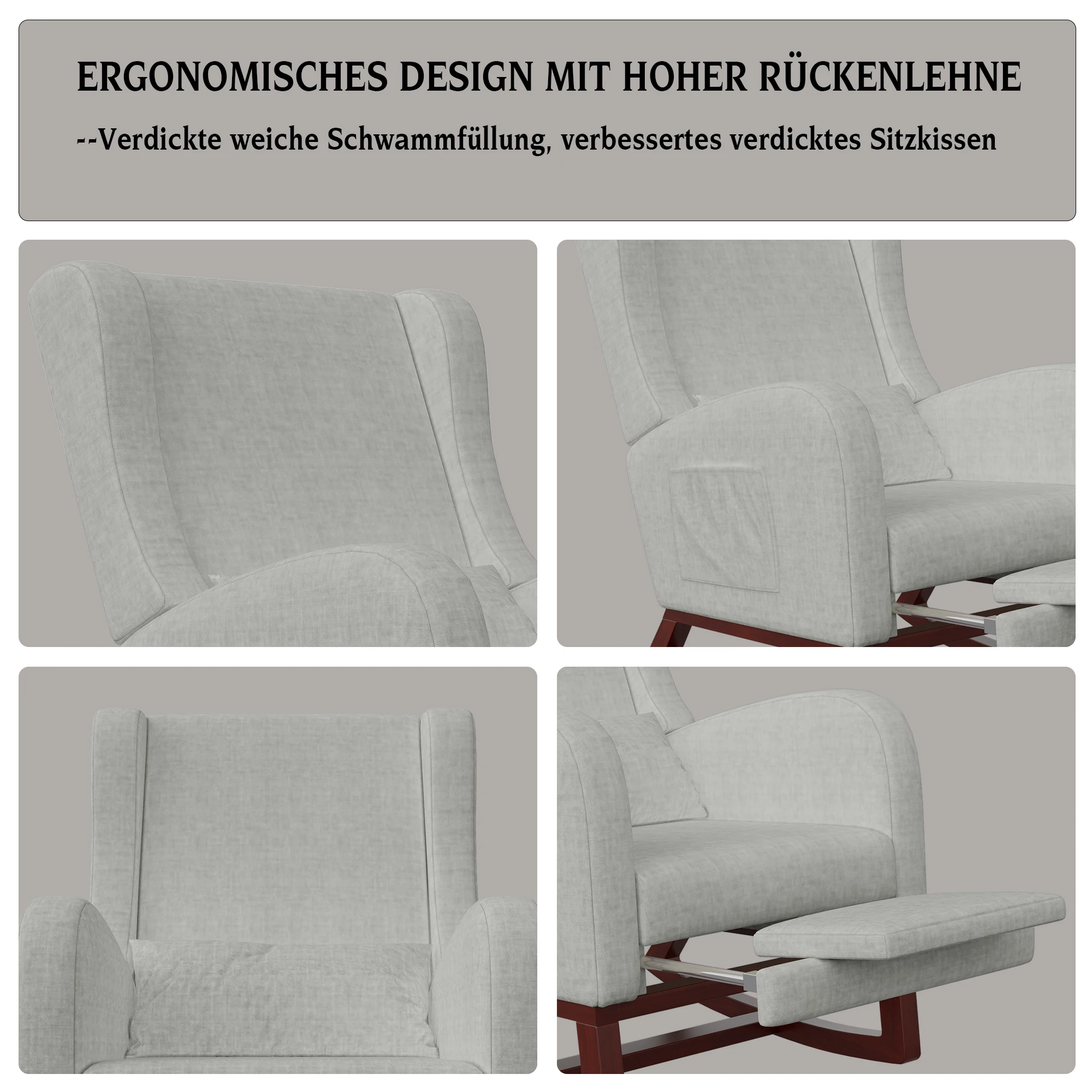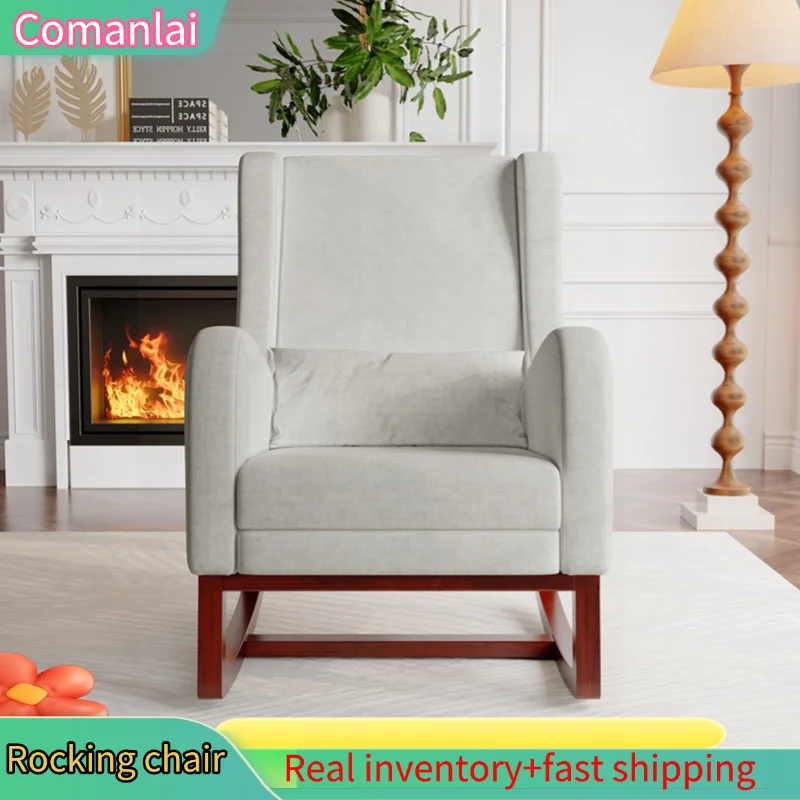 Кресло-качалка Comanlai, с подставкой для ног, кресло для отдыха, стильные подлокотники, кресло с высокой спинкой, для гостиной и спальни, матовый, серый