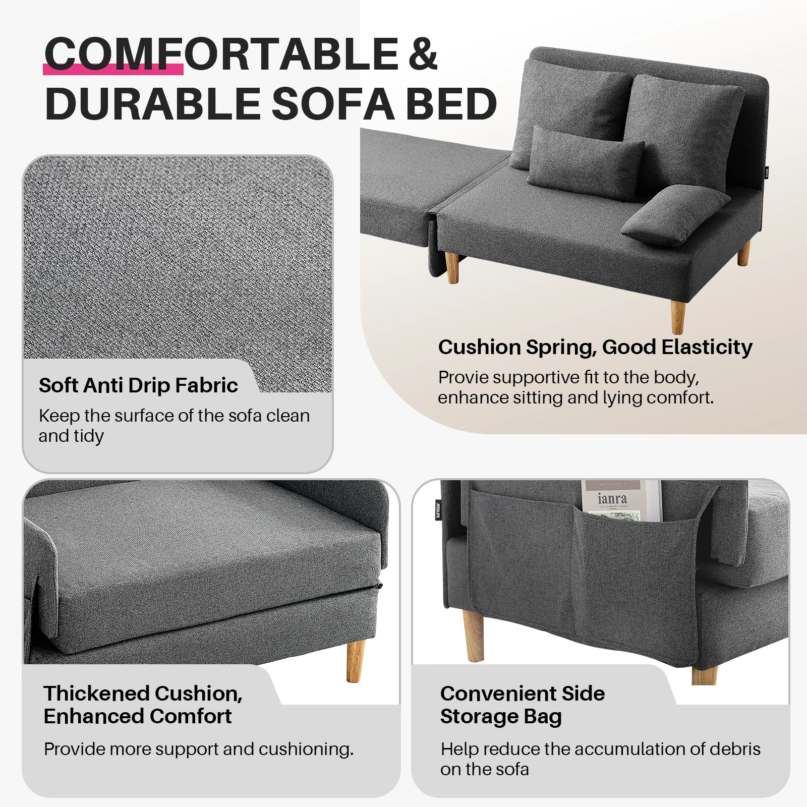 Универсальное Использование: Идеально подходит для небольших помещений, этот диван-кушетка плавно превращается из уютной зоны отдыха в удобное место для сна, вмещая как сидя, так и лежа. Когда он полностью расширен, он с комфортом вмещает дополнительных гостей.