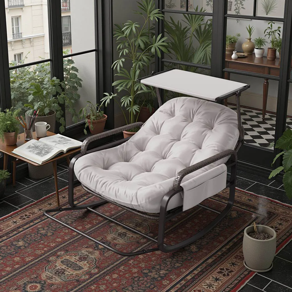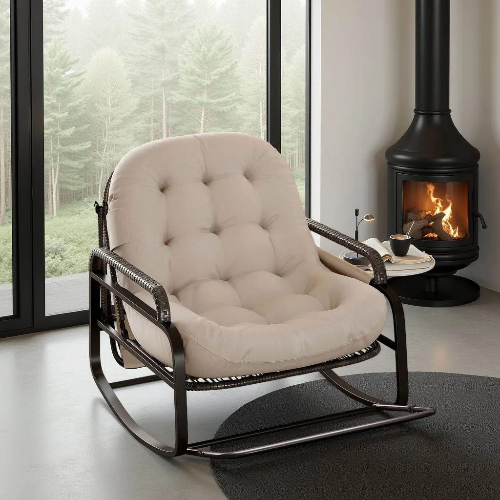 Конструкция 2-в-1 со складной подставкой для ног:Наслаждайтесь максимальной универсальностью.Это кресло-качалка оснащено передней подставкой для ног, которая легко раскладывается, поддерживая ноги, и складывается так же просто, превращая его в стандартное, компактное кресло-качалка.