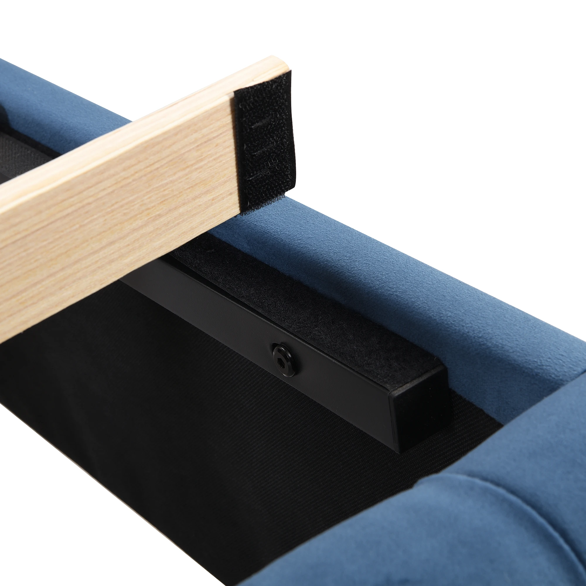Кровать с мягкой обивкой 90*200см, решетчатым каркасом и изголовьем, обивка на пуговицах, обивка с шипами, деревянными ножками, бархат, синий