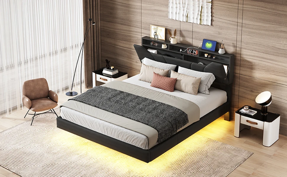 Современный плавающий дизайн: стильный плавающий вид кровати в сочетании со светодиодной подсветкой под кроватью придает спальне футуристическую и элегантную атмосферу.Настоящий привлекатель для каждого современного дома.
