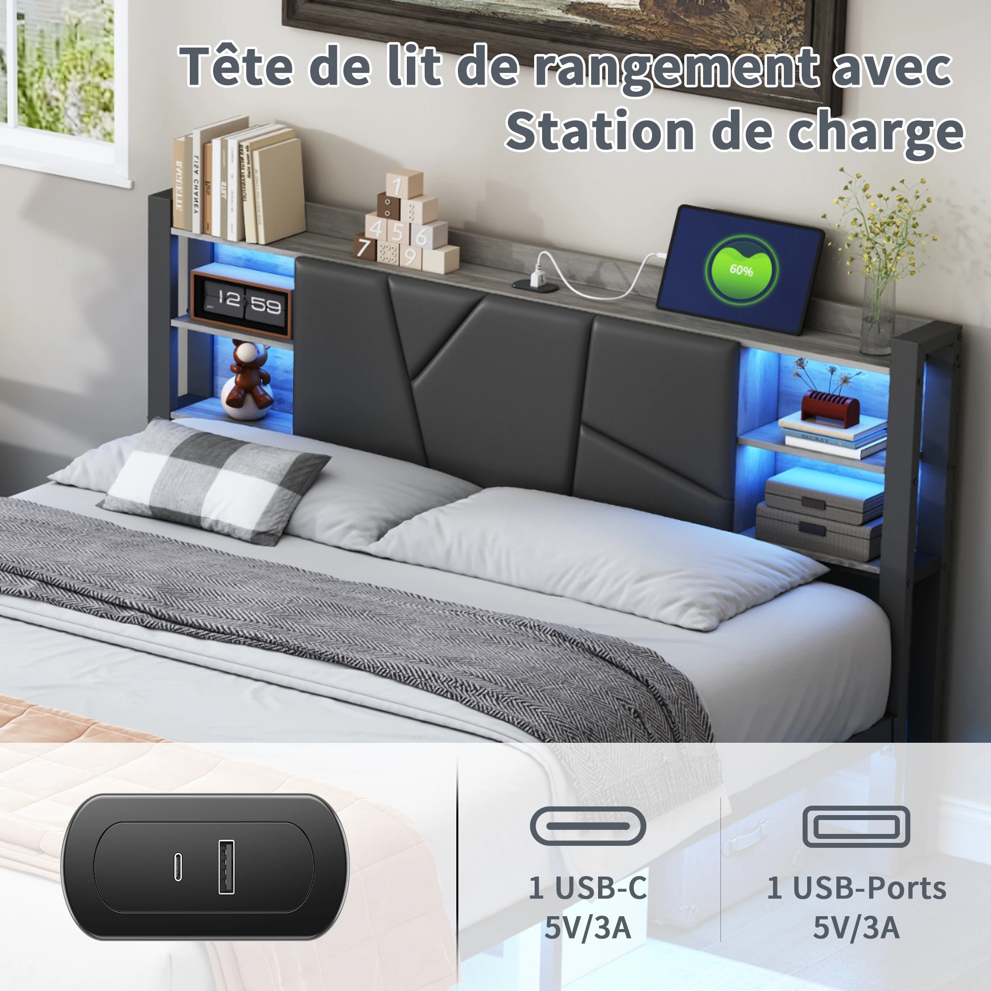 Инновационное светодиодное освещение: изголовье кровати обеспечивает удобное место для хранения вещей и оснащено светодиодной панелью RGB, которой можно управлять с помощью пульта дистанционного управления и мобильного приложения.Приложение позволяет настроить цвет и яркость светодиодов, что позволяет создать настроечное освещение в вашей спальне.Просто загрузите приложение, отсканировав QR-код на панели.