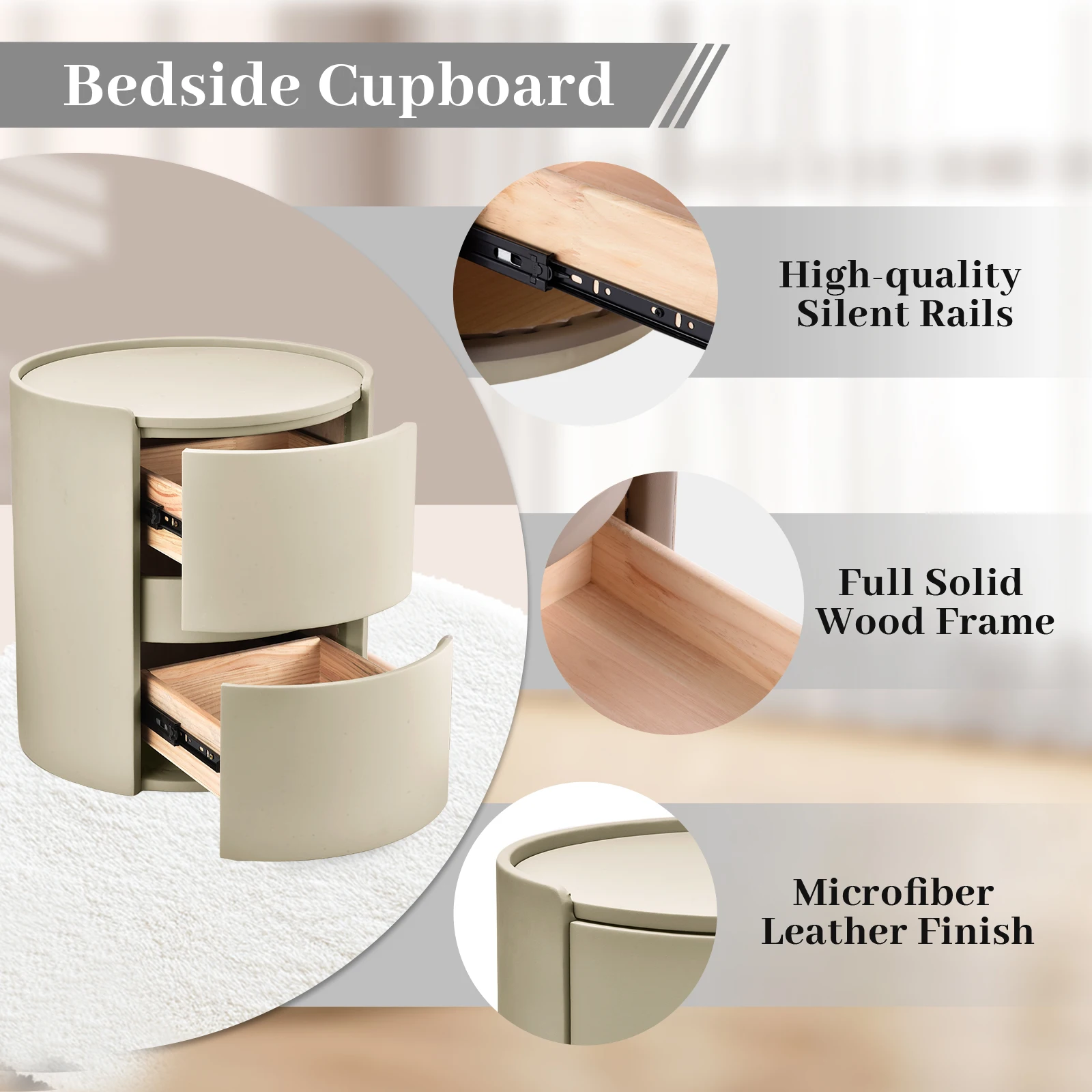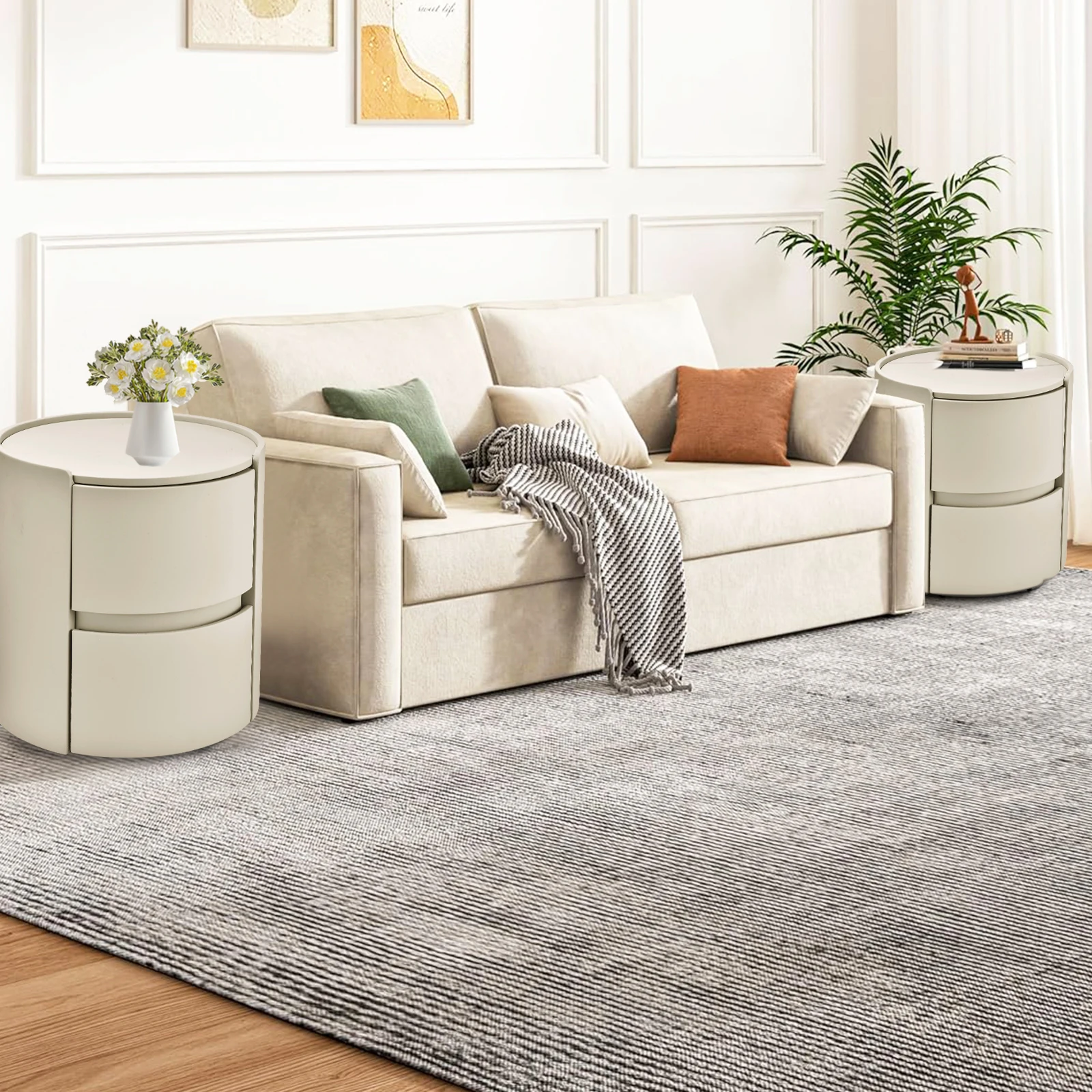 Будьте первым, кто оставил отзыв на “Круглая прикроватная тумбочка, современный ночной столик из массива дерева, шкаф для хранения с 2 ящиками для дома, офиса, спальни”