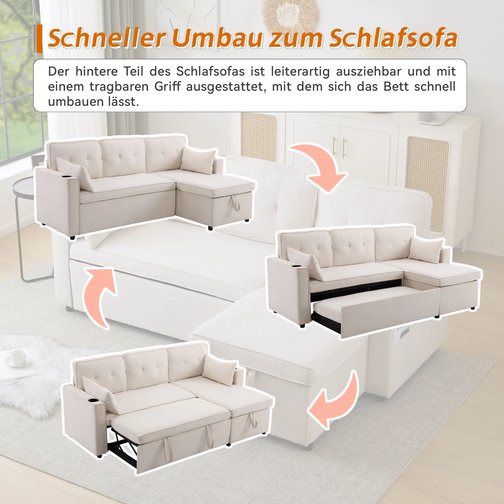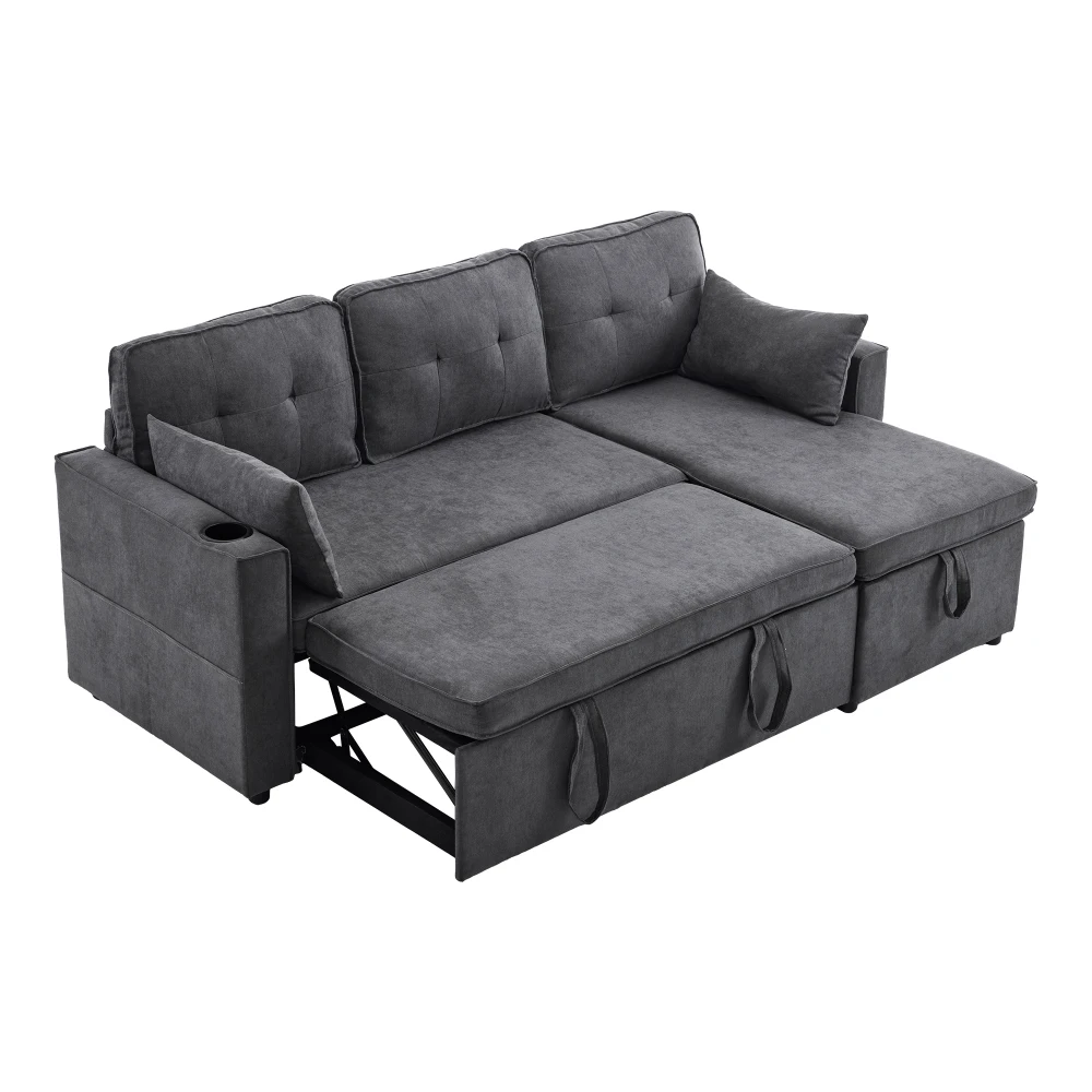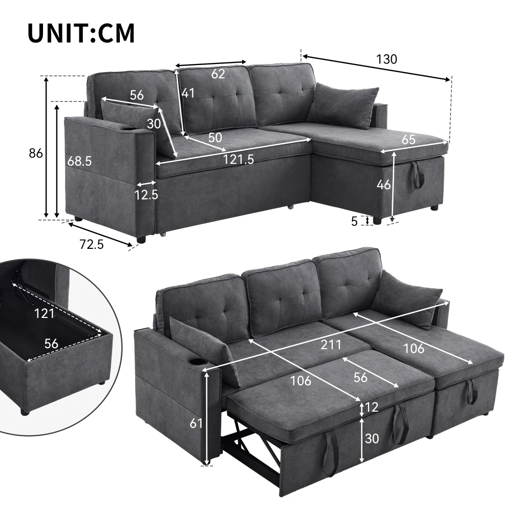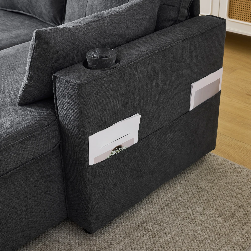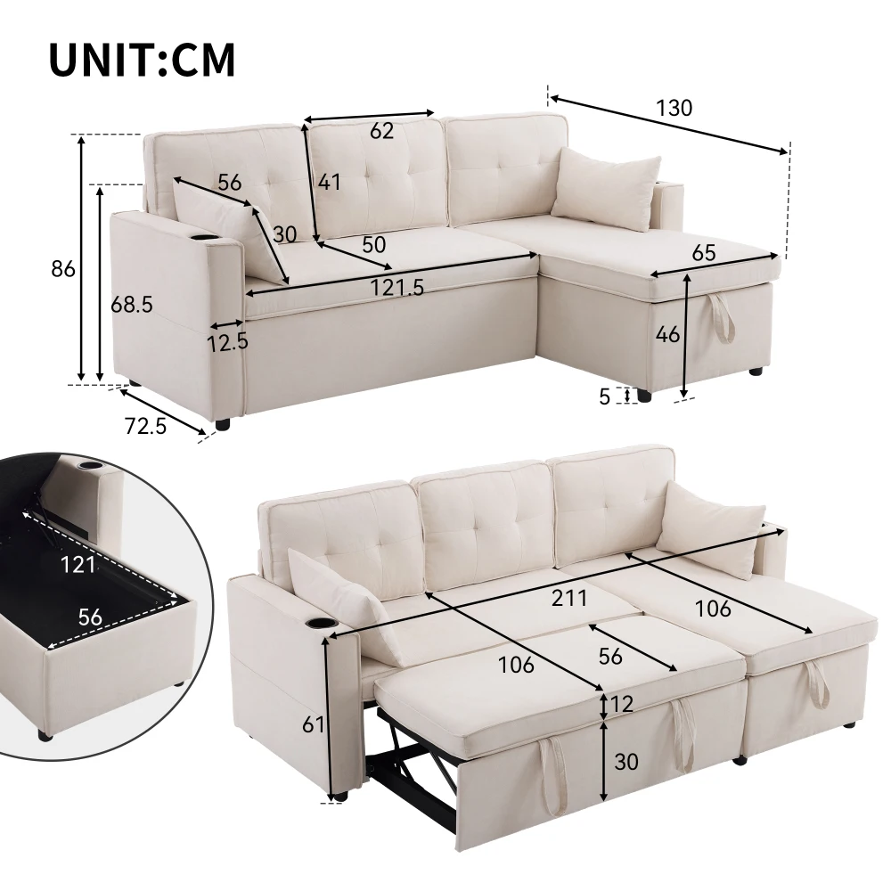L-образный мягкий диван-кровать с функцией сна, местом для хранения и держателем для напитков, сменный левый и правый