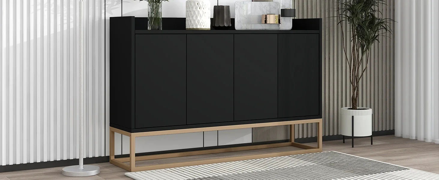 Lazyspace 4-дверный буфет без рук, сервант в минималистском стиле, шкафы для гостиной с металлическими ножками, мебель для дома