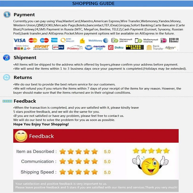 Мы отправляем онлайн-стандартную доставку Aliexpress, которая быстрая и безопасная. Мы осуществляем доставку с завода, поддерживаем оптовую продажу, и цена более доступная. Добро пожаловать на ваш заказ!