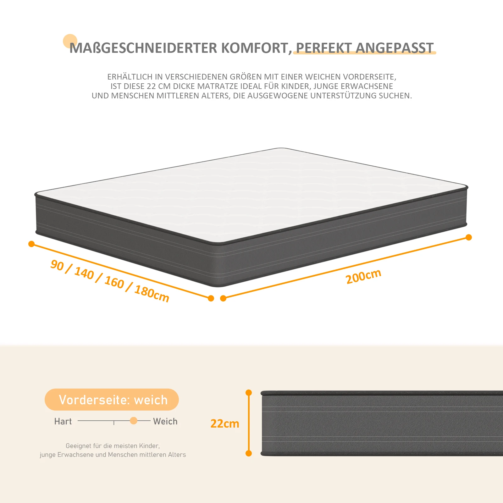 Матрас с карманным пружинным сердечником 180×200×22 см — 7-зонный матрас с комфортной пеной и устойчивой опорой H4