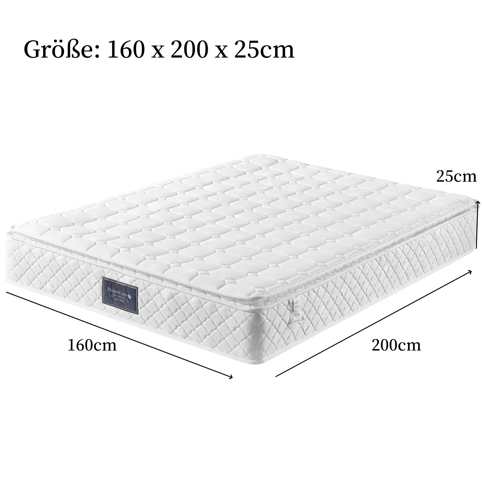 Общая толщина 25 см придает матрасу прочный и качественный вид.Поза на кровати выглядит очень атмосферно, не только повышает комфорт сна, но и может стать красивым аксессуаром в спальне..