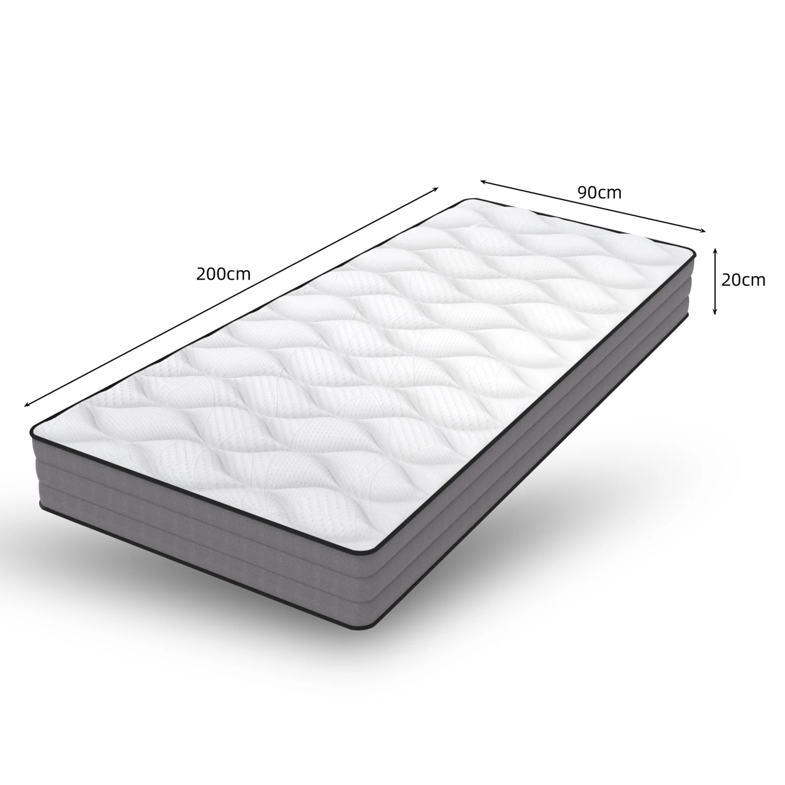 Габаритные размеры: 90×200×20см.120×200×20см,140×200×20см,160×200×20см,180×200×20см