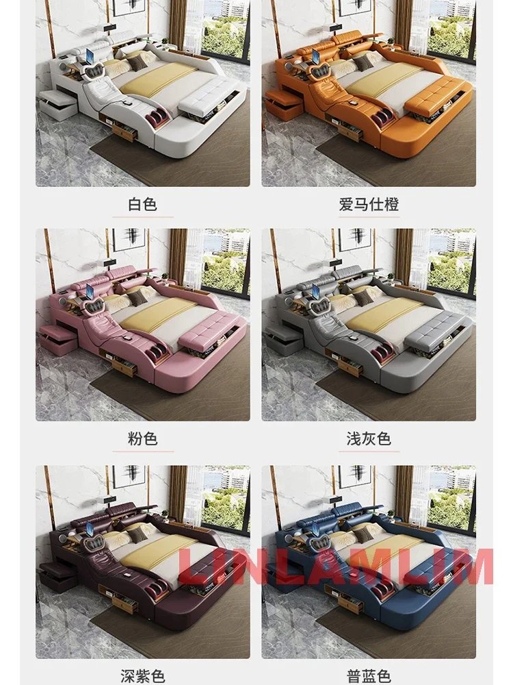 MINGDIBAO Современный МНОГОФУНКЦИОНАЛЬНЫЙ Tech SMART BED 2-местный | ФУТУРИСТИЧЕСКАЯ МЕБЕЛЬ | Кровать Ultimate Massage Tatami из натуральной кожи
