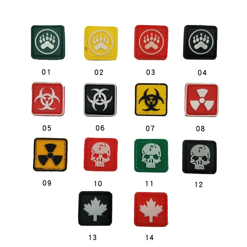 Мини-военная нашивка из ПВХ, эмблема биологической опасности, значки с черепом, 3D резиновая ткань, знак радиации, кленовый лист, медвежья лапа, крючок, петля, квадратная нашивка