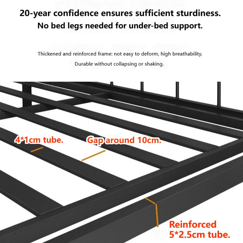 Прочная конструкция: прочный железный каркас кровати и утолщенная конструкция обеспечивают долговременную устойчивость и предотвращают изгиб или деформацию.
