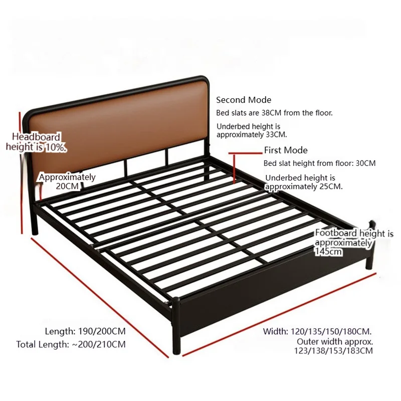 Регулируемая высота: каркас кровати имеет два регулируемых режима высоты, что позволяет настроить высоту кровати по своему усмотрению.