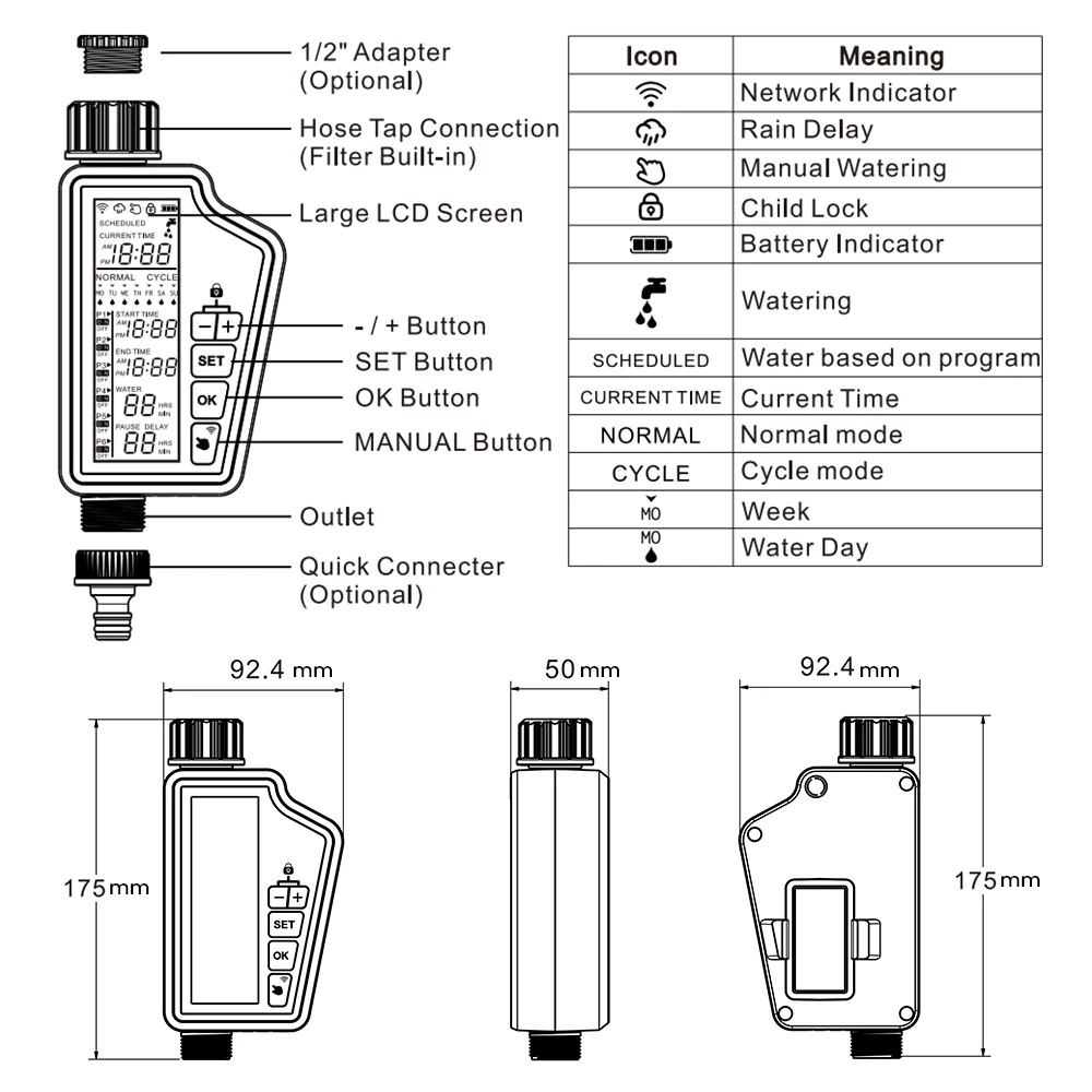 MIUCDA Tuya WIFI Интеллектуальный таймер для полива сада с большим дисплеем LCD для домашней и наружной орошения,полностью настраиваемая программа,совместим с Alexa и Google Home