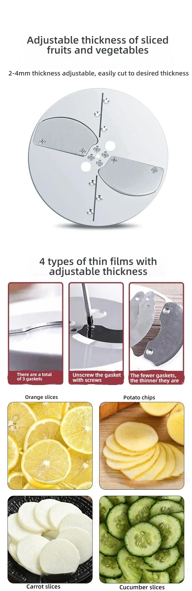 Регулируемая толщина нарезки фруктов и овощей.