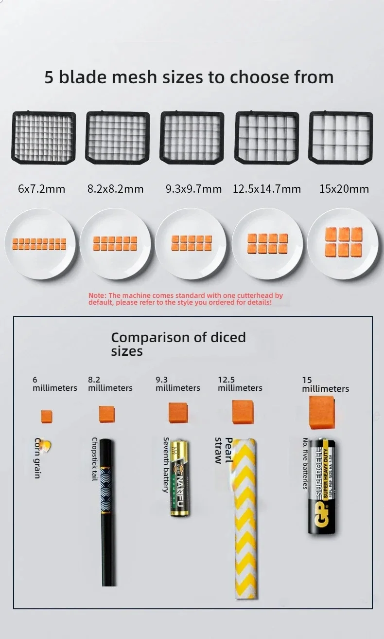 Набор 3: основной блок x1 + 5 размеров кубиками + измельчение + нарезка.