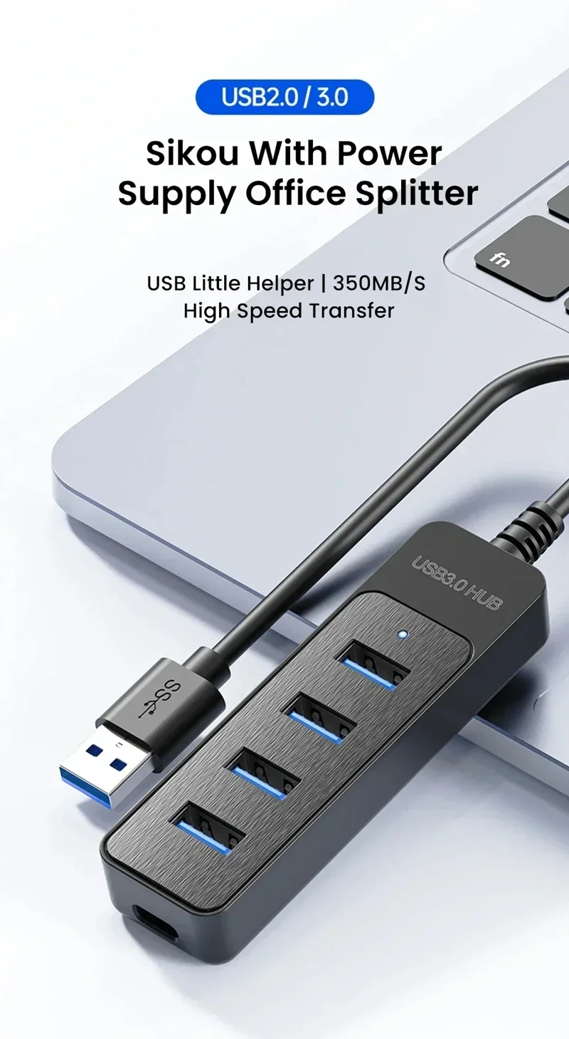 Многопортовый концентратор USB Type-C, 4-портовый USB-разделитель, высокоскоростной разветвитель USB 3.0, адаптер питания для компьютерных аксессуаров, 2025 г.