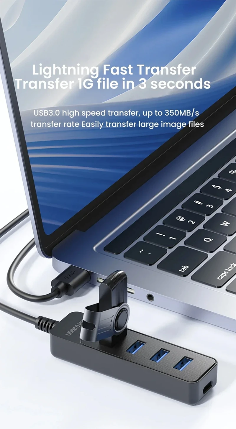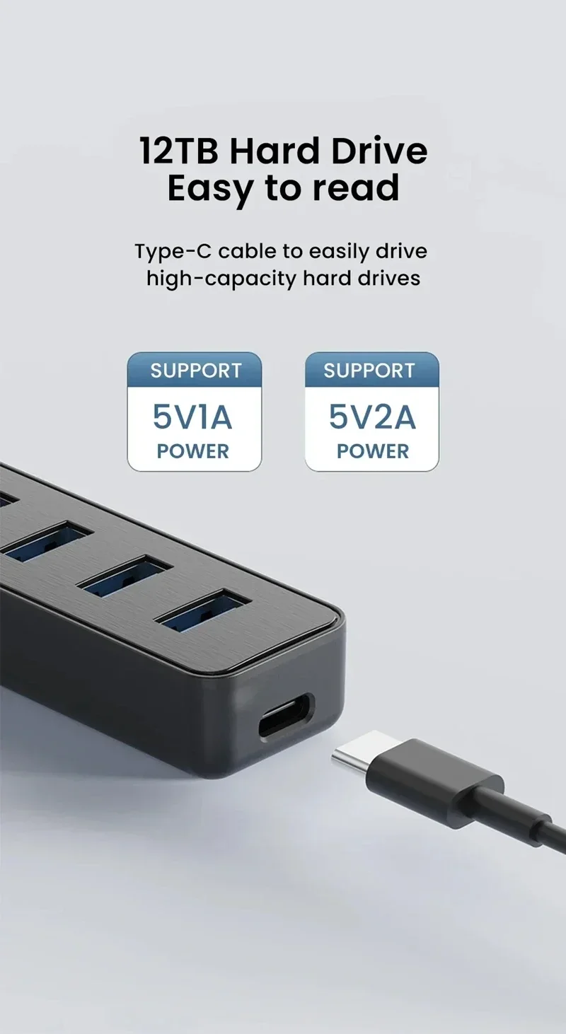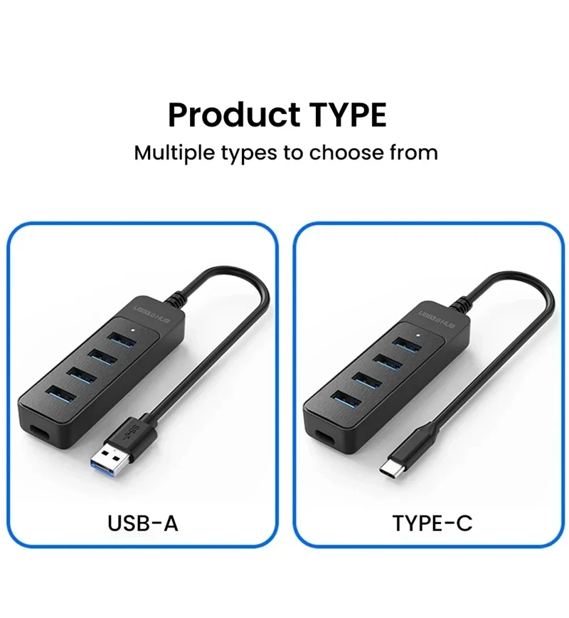Многопортовый концентратор USB Type-C, 4-портовый USB-разделитель, высокоскоростной разветвитель USB 3.0, адаптер питания для компьютерных аксессуаров, 2025 г.