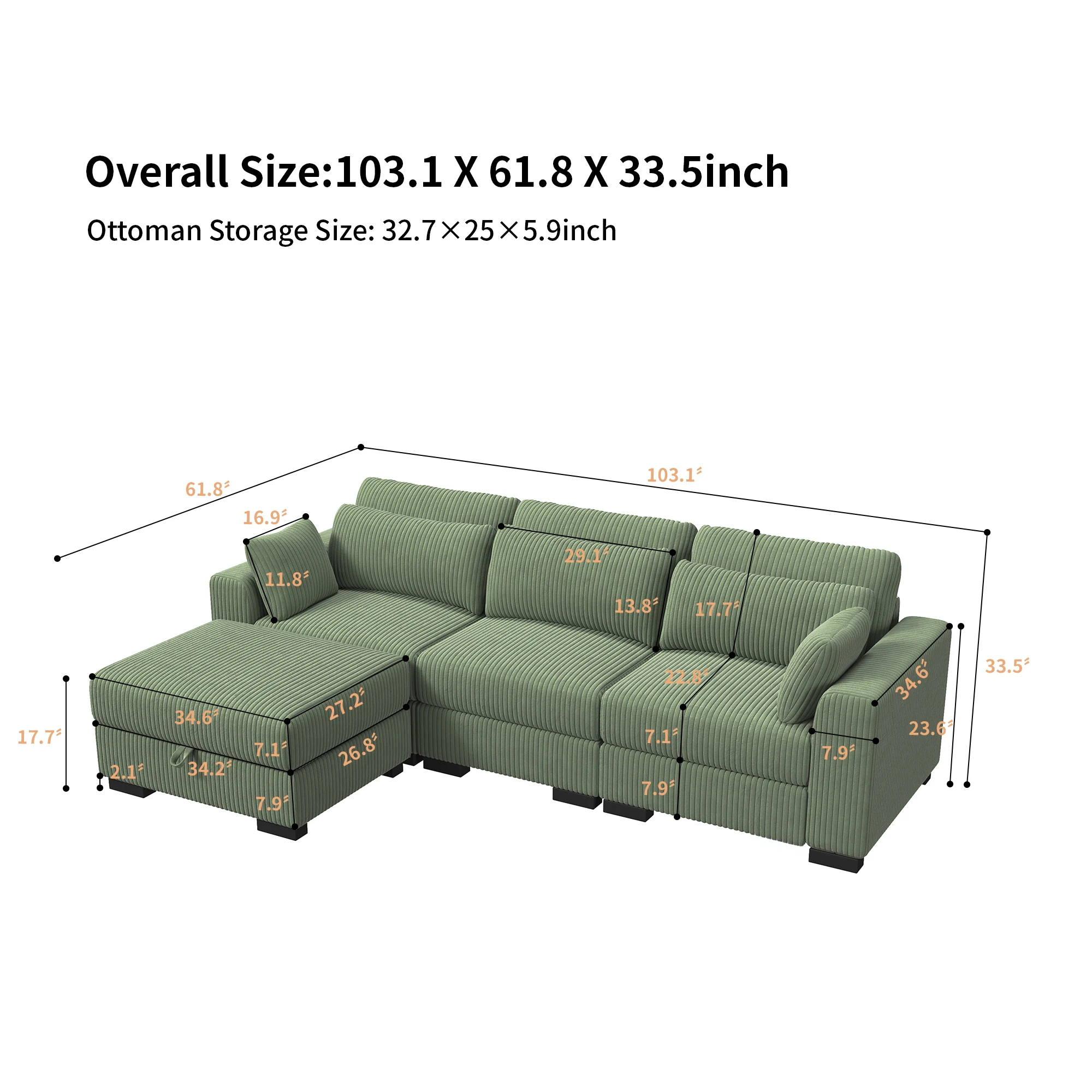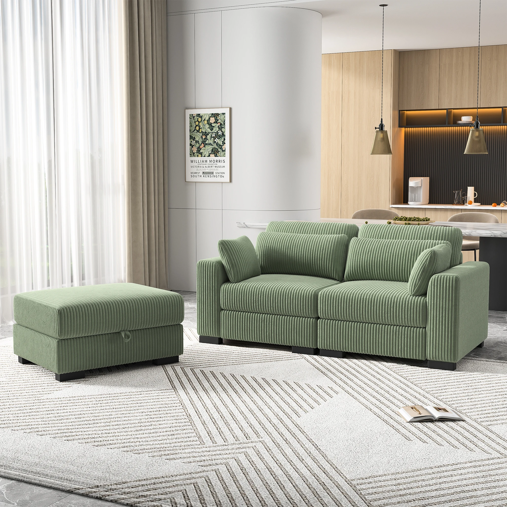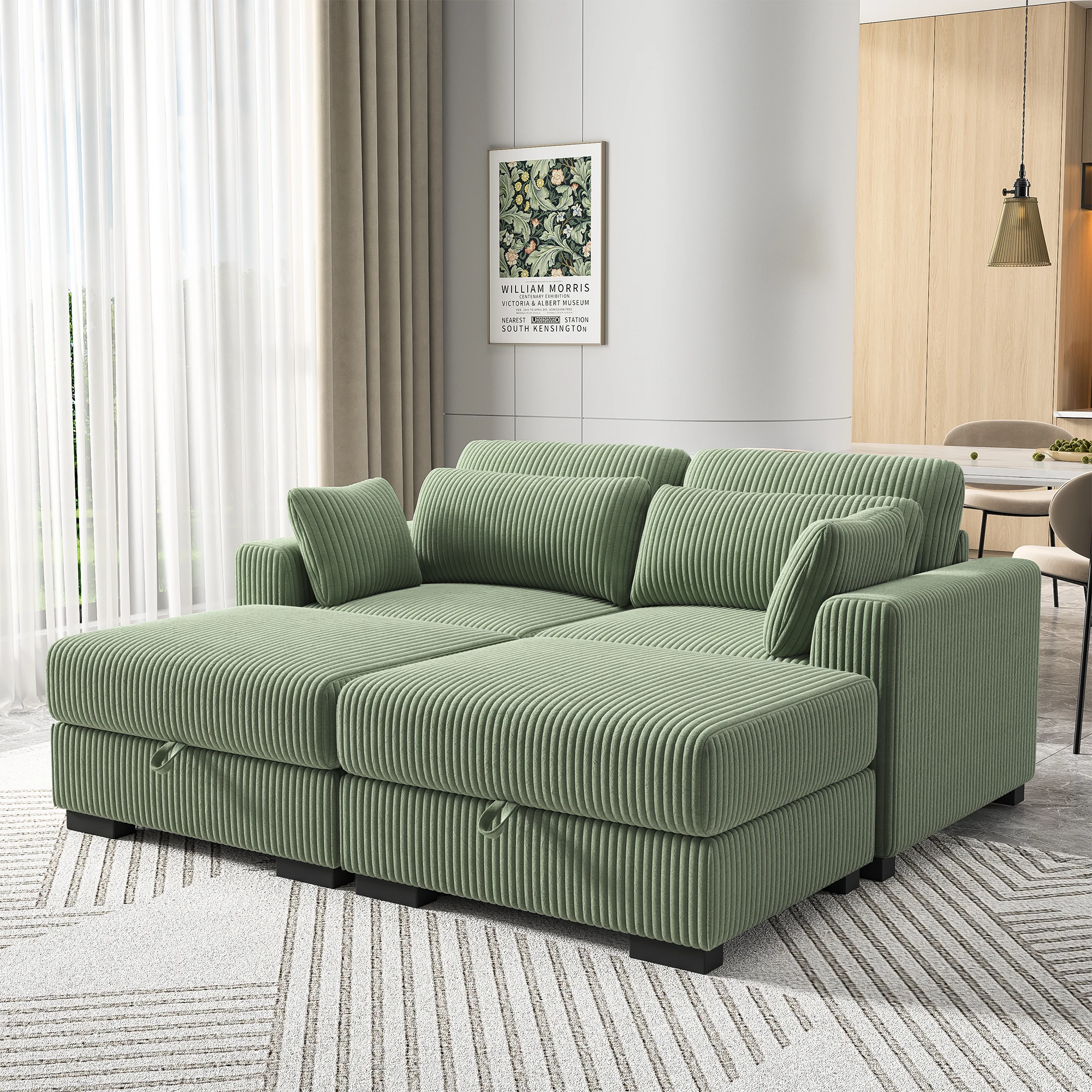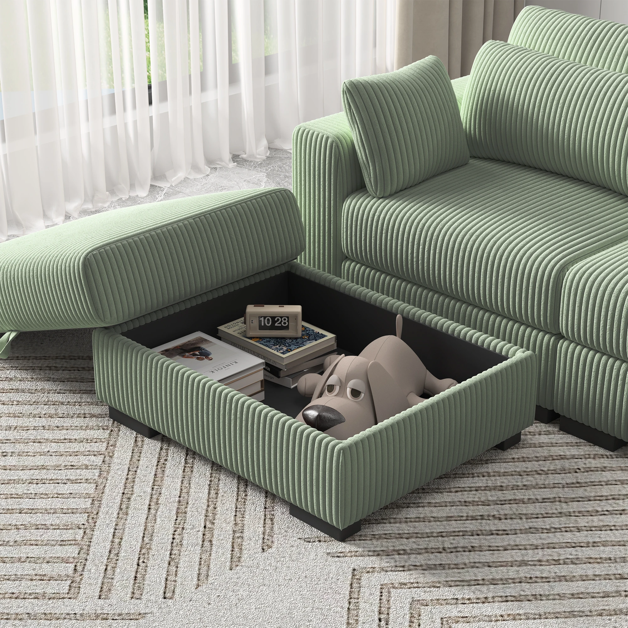Модульный диван Anajqaqia, секционный диван, U-образный диван, мягкий диван для гостиной и спальни, вельвет, зеленый