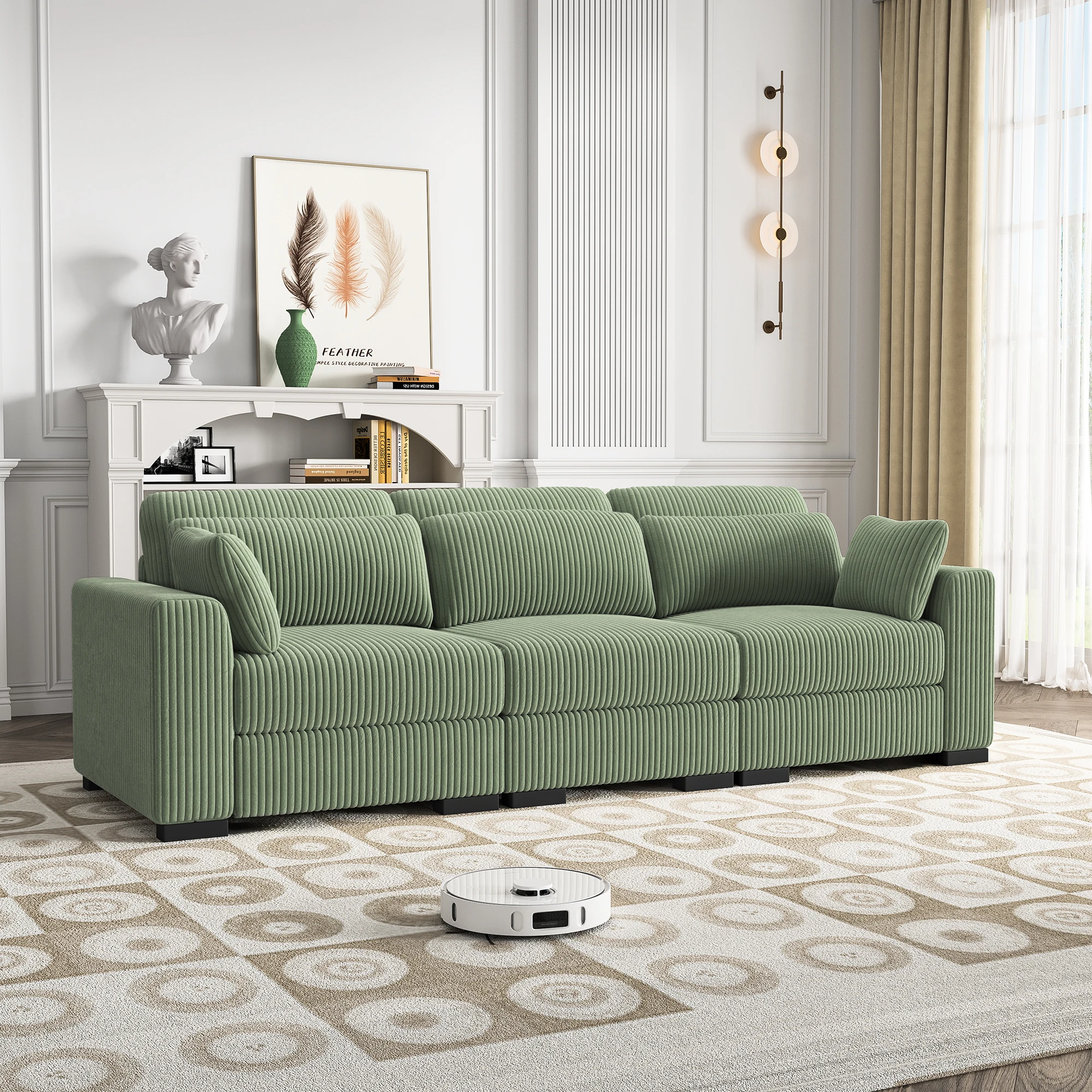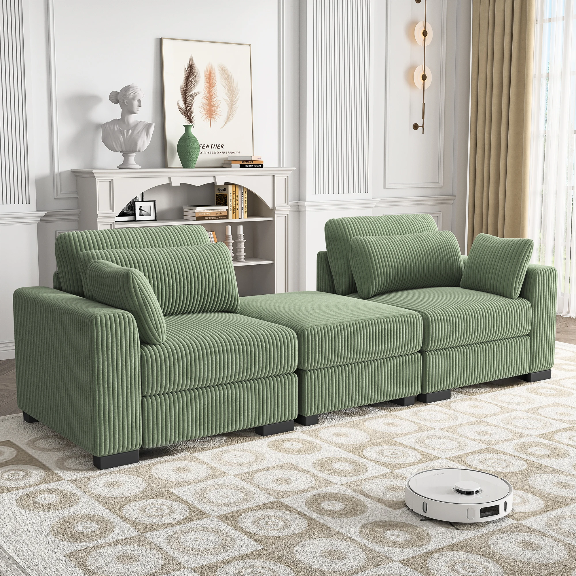 2.Модульная система диванов:Этот мягкий диван из вельвета предлагает множество вариантов конфигурации.Свободно выбирайте различные компоненты, чтобы собрать идеальную конфигурацию дивана.Его можно разместить как L-образный диван, U-образный диван, диван-кровать или многоместный диван.Модульный диван для гостиной можно использовать отдельно или комбинировать различными способами, что обеспечивает гибкие и универсальные варианты размещения.