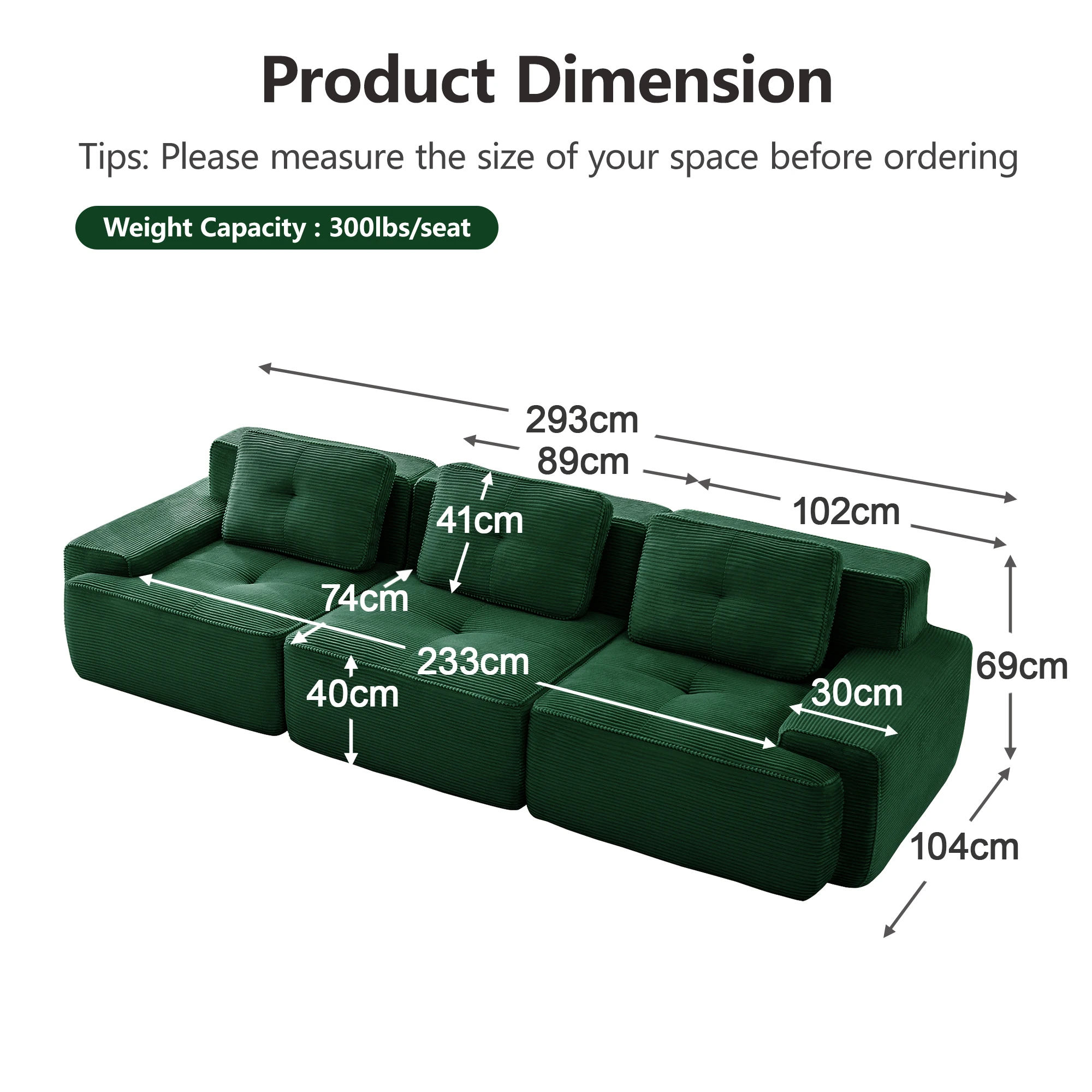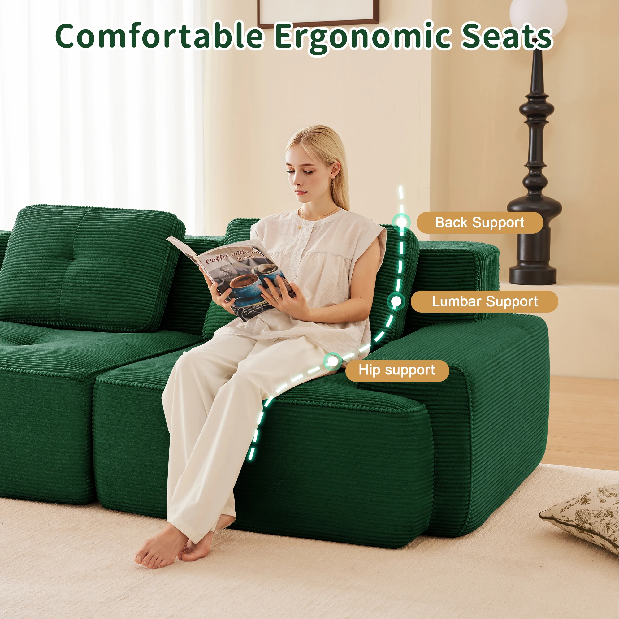 【Комфорт, похожий на облако, и глубокая поддержка сиденья】Погрузитесь в наш диван без костей!Пена премиум-класса 32D обеспечивает мгновенную мягкость и длительную поддержку, создавая ощущение настоящего облачного дивана.Изогнутая спинка и сиденье глубиной 74 см удерживают ваше тело в идеальном положении и обеспечивают максимальный комфорт.Идеально подходит для вечеров кино или сна — этот универсальный модульный диван для гостиной обеспечивает облачный комфорт и создает вашу личную зону отдыха.
