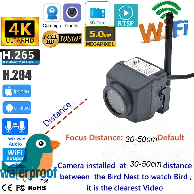 Монитор дикой природы, водонепроницаемый, IP66, 5 МП, 2 МП, 8 МП, 4K imx415, скворечник, мини-Wi-Fi, IP-камера, гнездовая коробка, двустороннее аудио, без свечения, ИК RTSP FTP