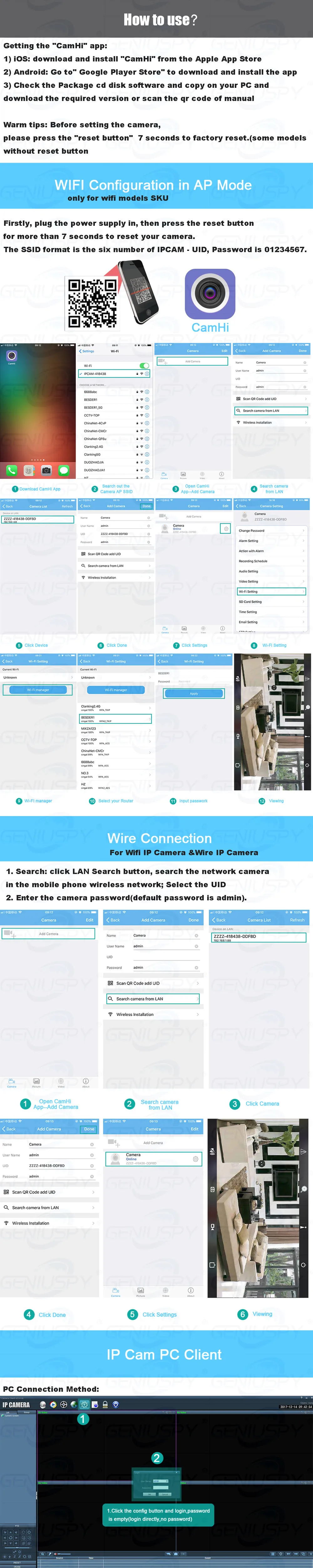 Geniuspy 2mp 2.4G & 5g WIFI ТОЛЬКО модели: 1/3 дюйма SC2336P +GK7201V200 h.264 H.265 1920*1080p 20 кадров в секунду