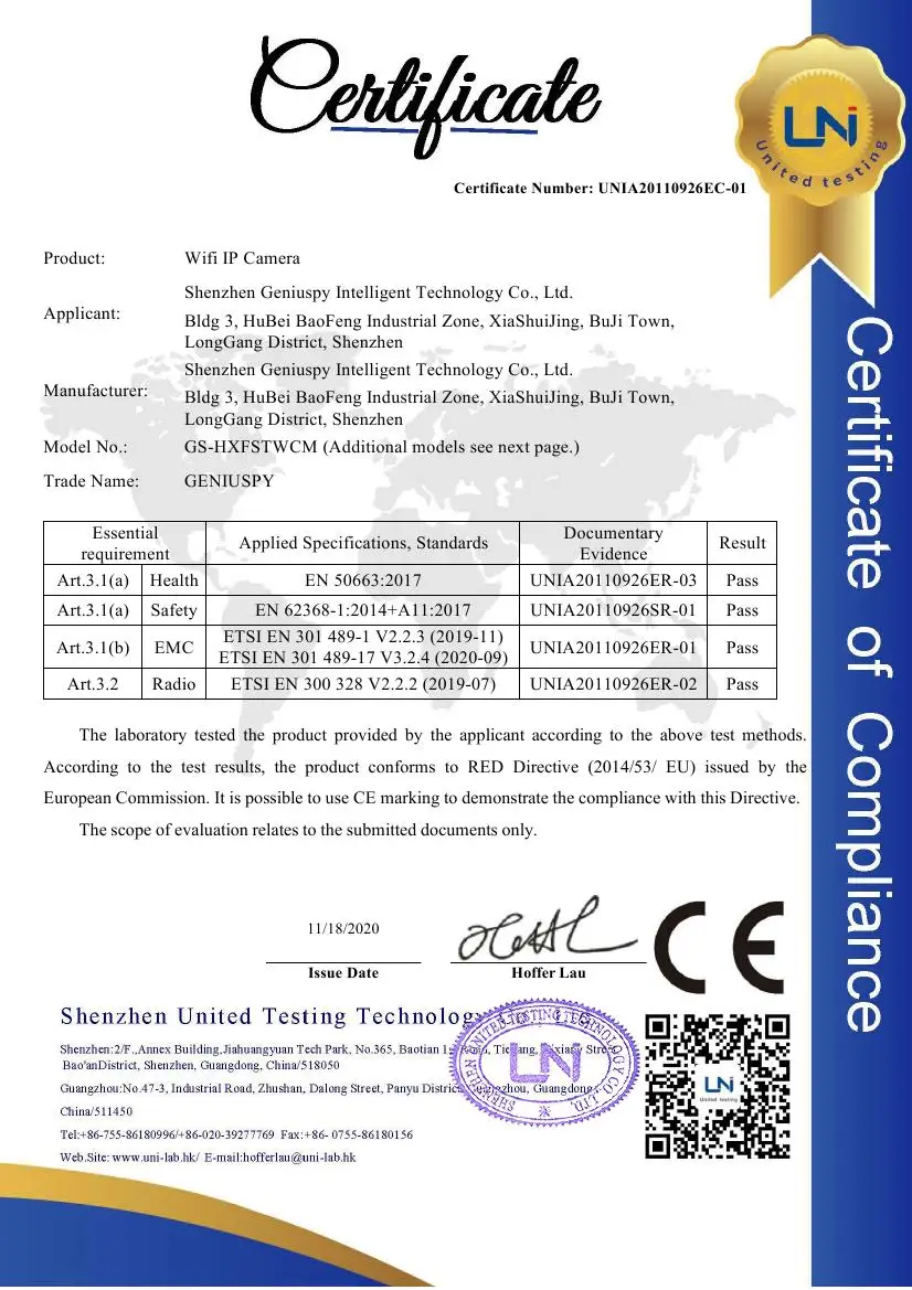 Geniuspy 5mp 2,4G и 5G WIFI модели: 1/2,7″ GC5603 +T41NQ h.264 H.265 5mp 2880X1620P 20 кадров в секунду