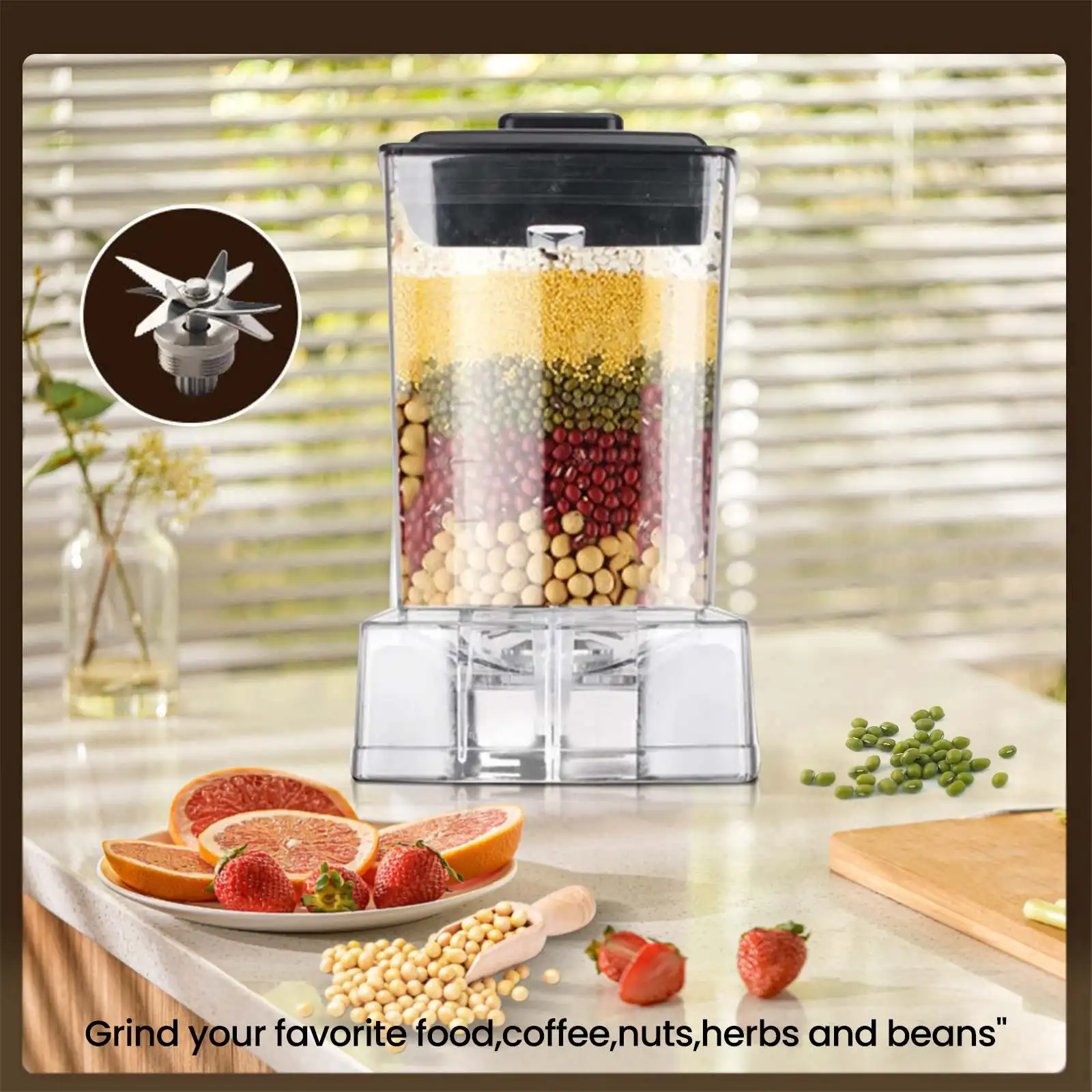 1.Высокоскоростное перемешивание: этот кухонный блендер для пищевых смузи мощностью 6000 Вт оснащен 4 лезвиями из нержавеющей стали, что делает его идеальным для измельчения замороженных фруктов, кубиков льда, молочных коктейлей, коктейлей, соусов и т. д.