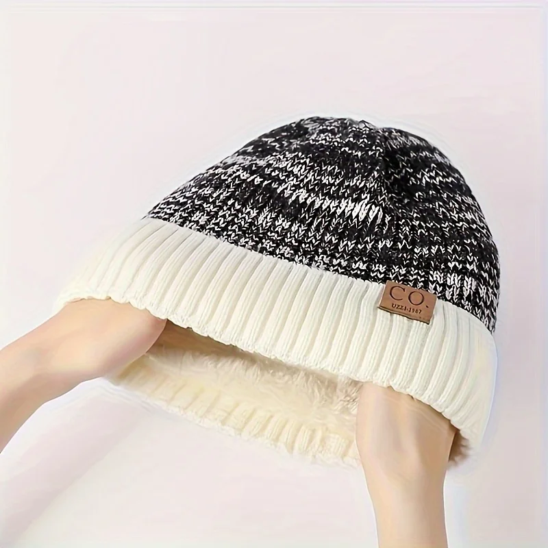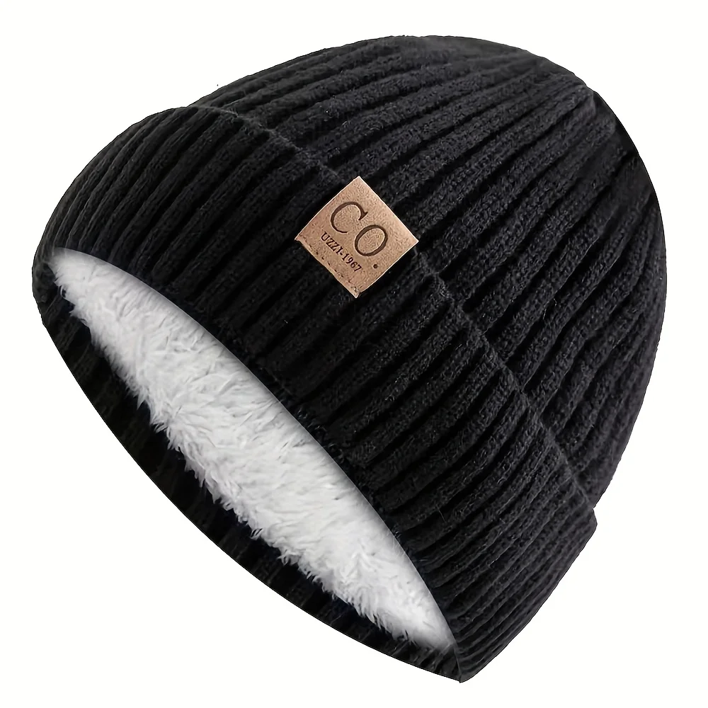 Мужская спортивная вязаная шапка с нашивкой из искусственной кожи CO UZZL 1978 года — зимняя шапка в темно-синюю и белую полоску
