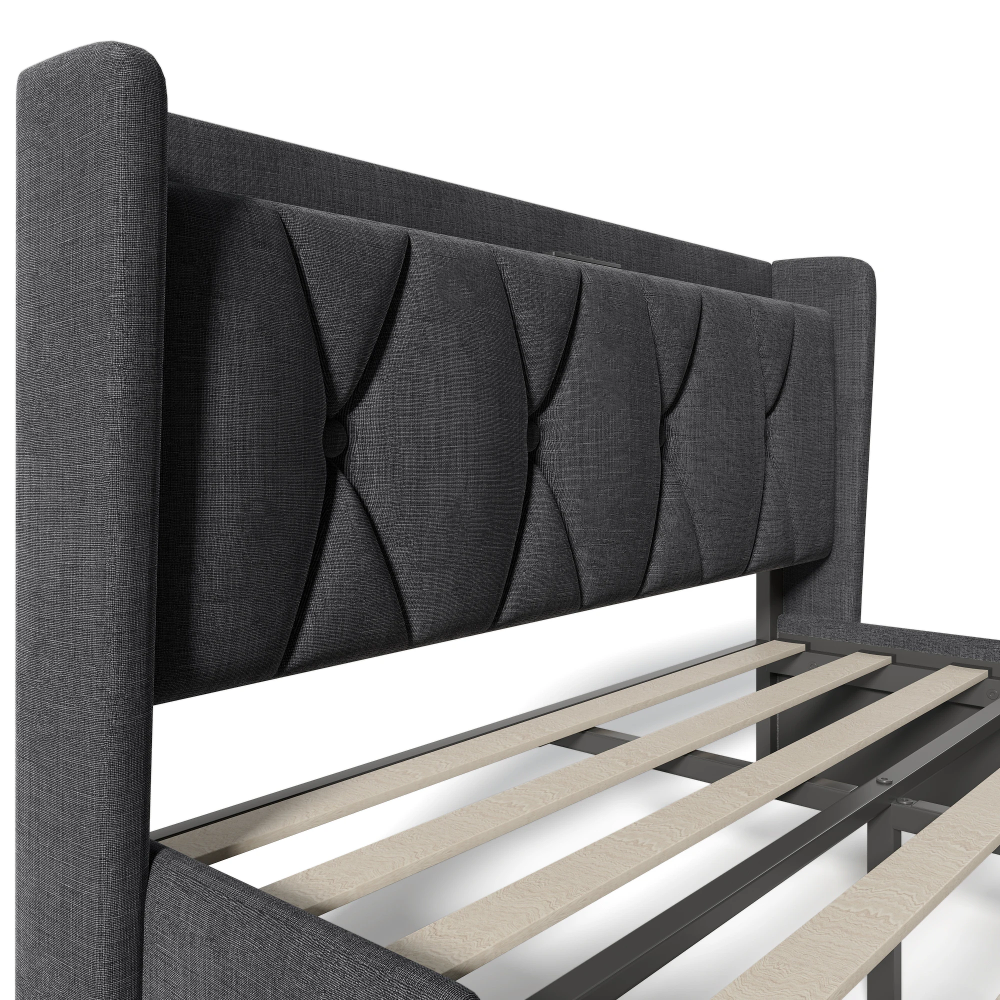 1.Превосходный стиль: эта кровать с изголовьем с пуговицами с ромбовидным узором и роскошной серой обивкой, покрывающей весь каркас, одновременно стильная и удобная.Серый цвет идеально подходит для универсальности дизайна, поскольку дополняет различные стили интерьера.