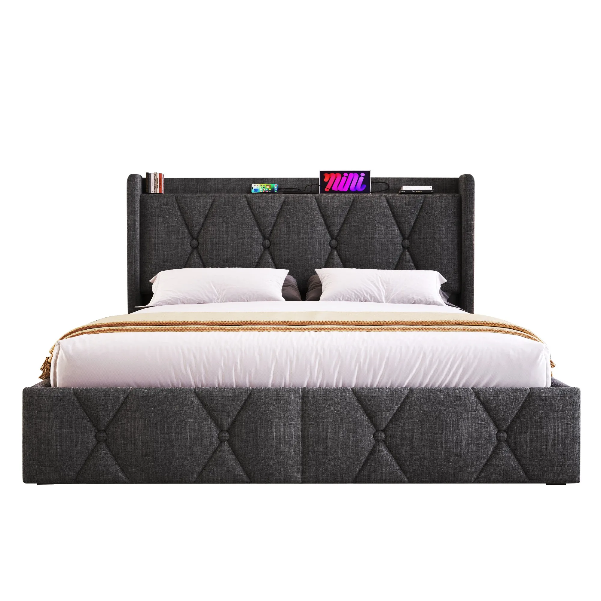 4.Исключительно прочный: эта кровать для хранения, изготовленная из высококачественных материалов, обещает годы надежной службы.Оббивка из серого льна прочна и рассчитана на длительное использование, а металлические ножки обеспечивают дополнительную устойчивость и исключительную поддержку, дополняя образцовый комфорт кровати.