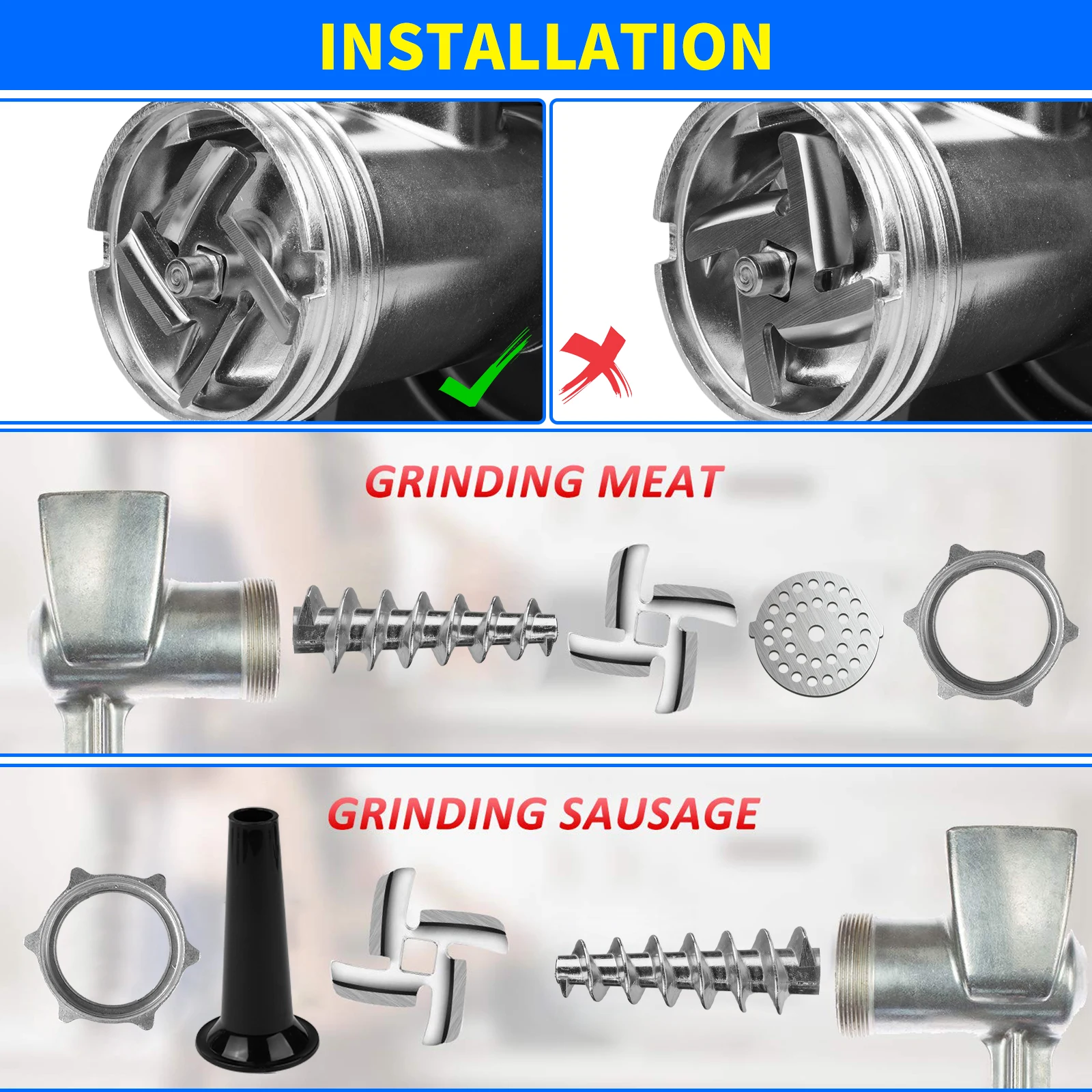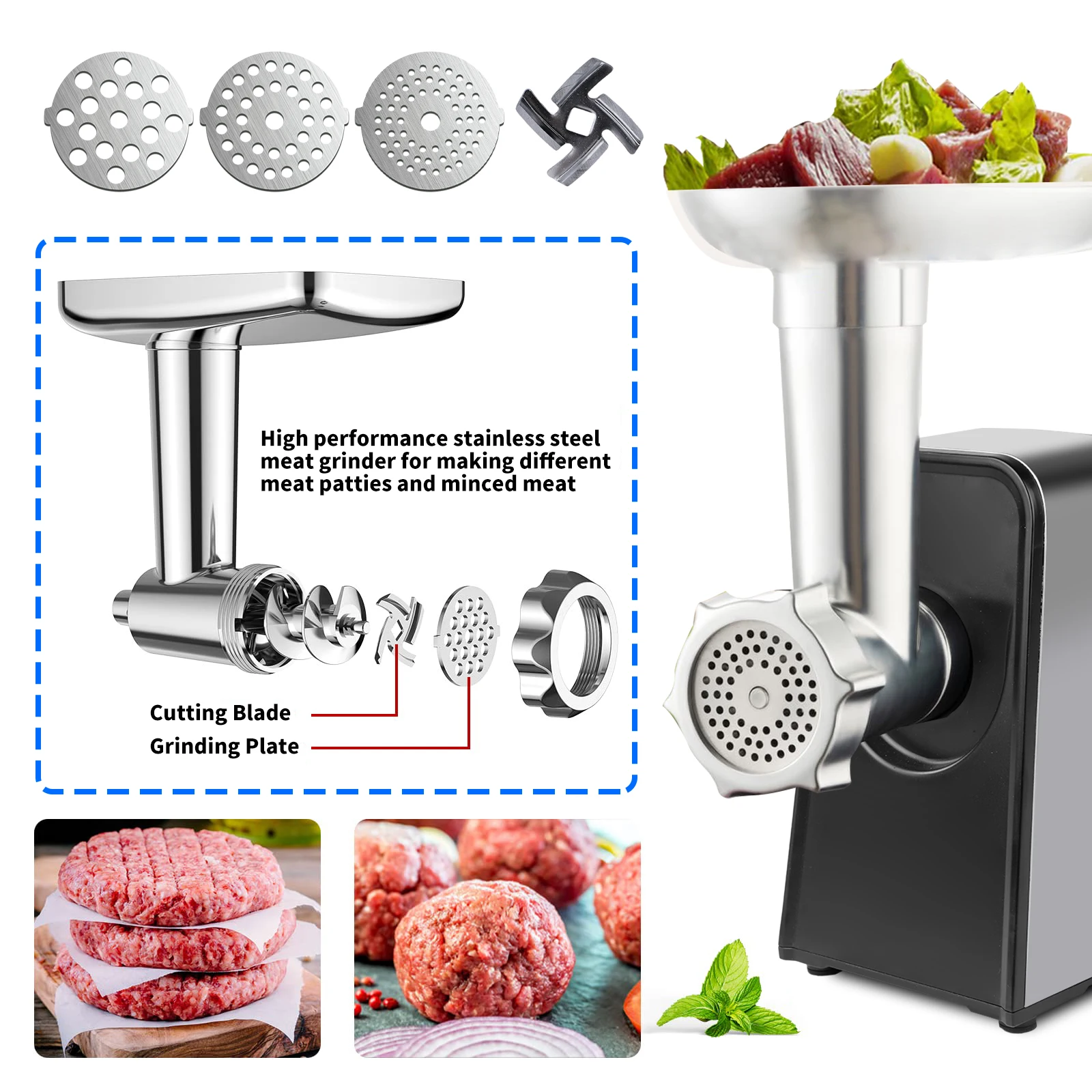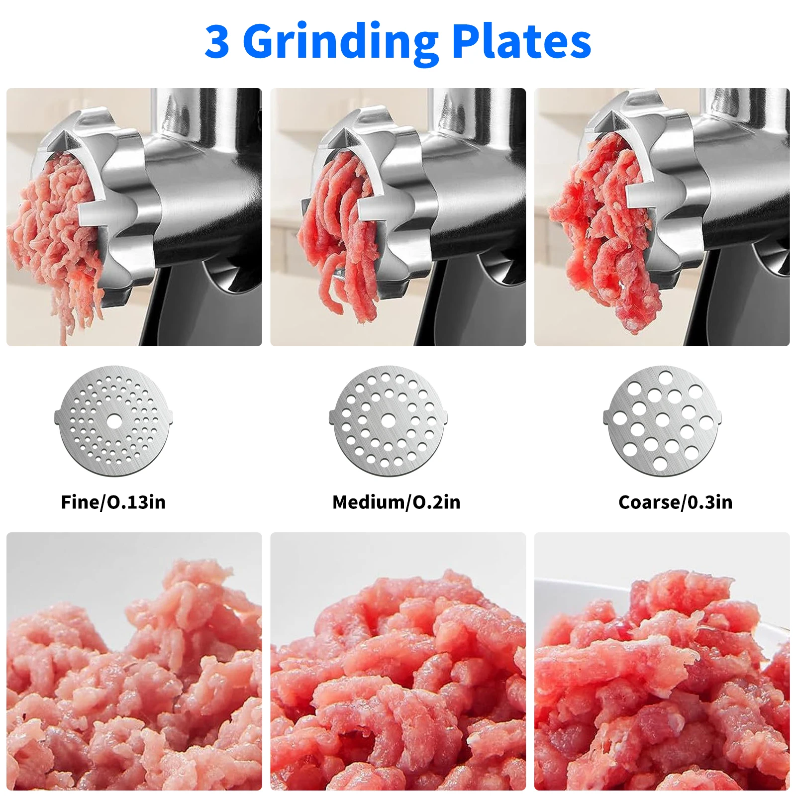 4.Оснащен тремя спецификациями сеток для пищевых металлических ножей: 3 мм/5 мм/7 мм, острыми и прочными, легко моются;