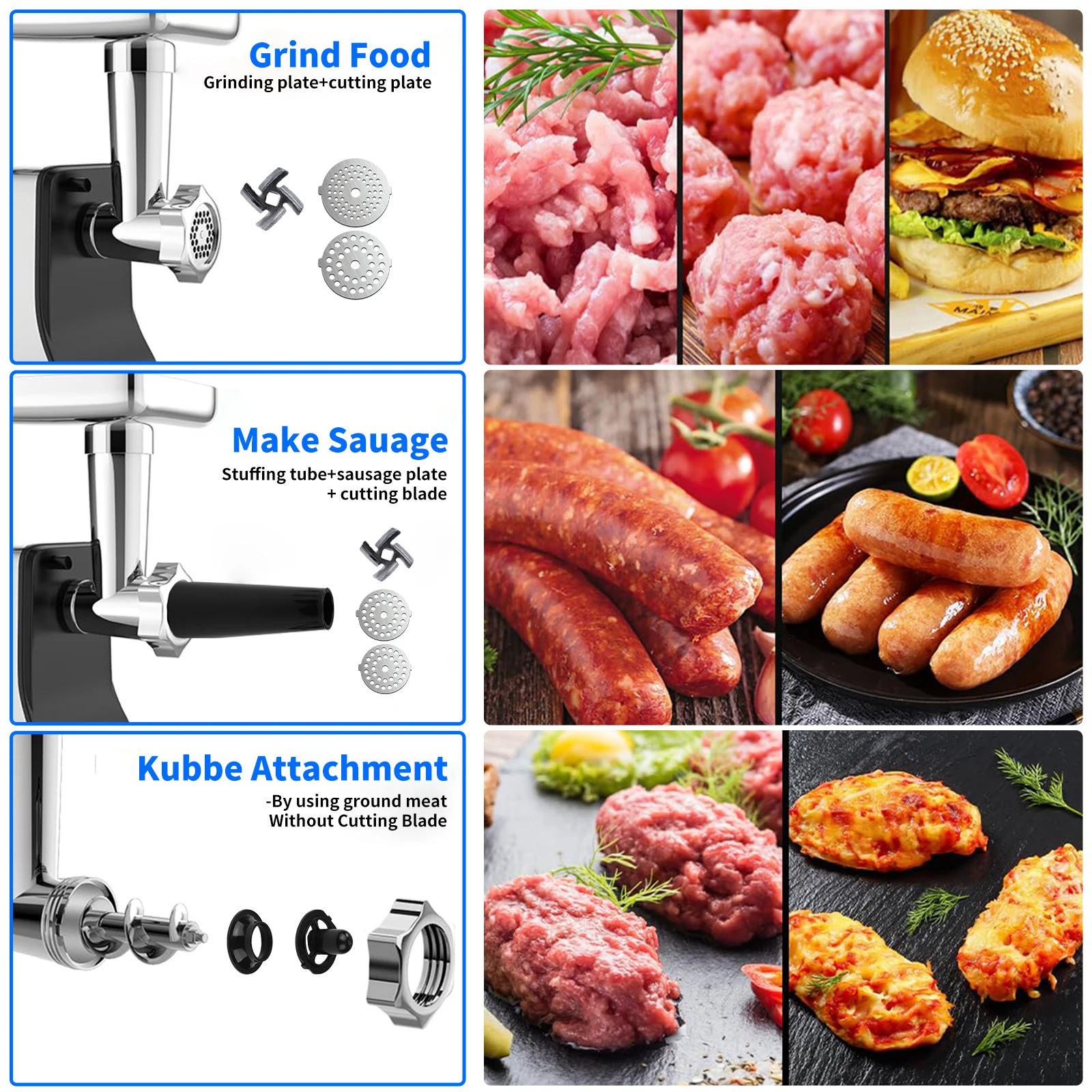 1.Многофункциональная мясорубка и овощерезка 9-в-1: измельчение мяса, клизмы, фрикаделек, нарезка овощей на тонкие кусочки, толстые кусочки, ломтики, волнистые нарезки, измельчение, приготовление варенья;