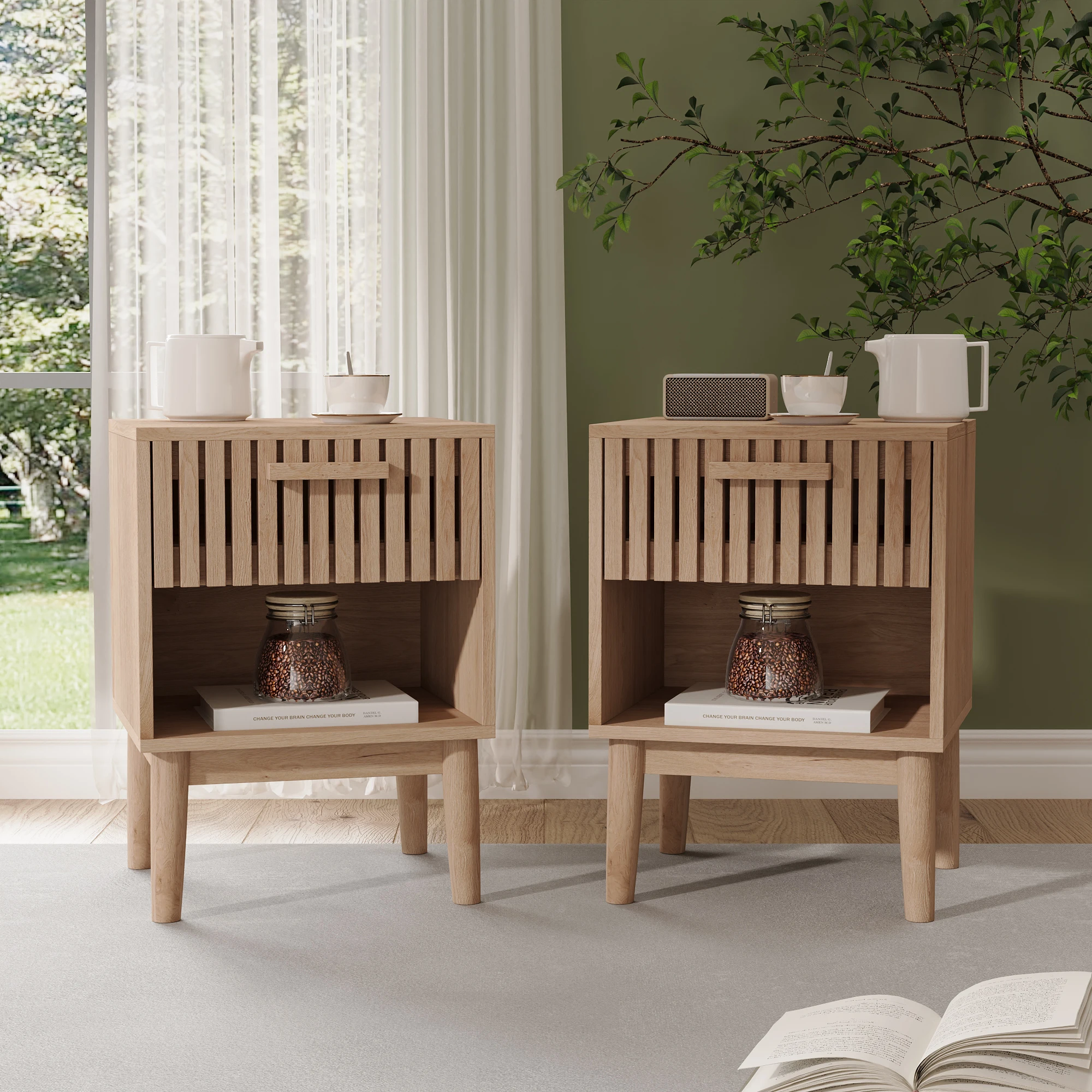 Набор из 2-х прикроватных тумбочек, приставных столиков с 1 ящиком и открытым отделением, современная тумбочка для спальни, гостиной, офиса