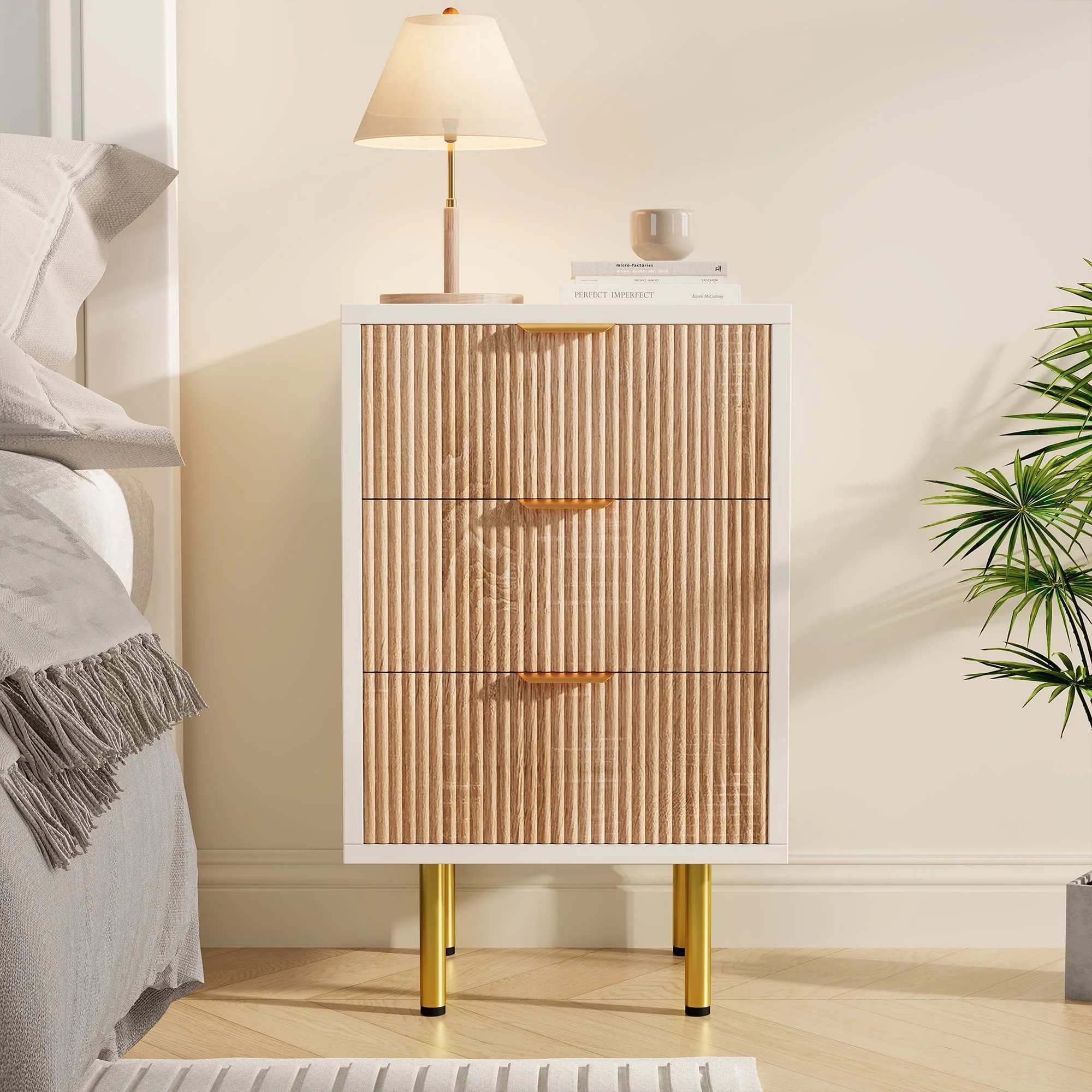 Эта прикроватная тумбочка имеет двухцветный дизайн: белую конструкцию и панели ящиков для напитков, которые до совершенства улучшают суть современного минимализма.Безупречная белизна конструкции стильно контрастирует с теплом и естественностью панелей напитков, создавая одновременно простой и изысканный стиль.Его изящные линии гармонично вписываются в современный, минималистичный и скандинавский интерьер, а также различные стили оформления, такие как сдержанная роскошь и американский стиль.Поливалентный, он легко становится гармоничным декоративным элементом в любом помещении.