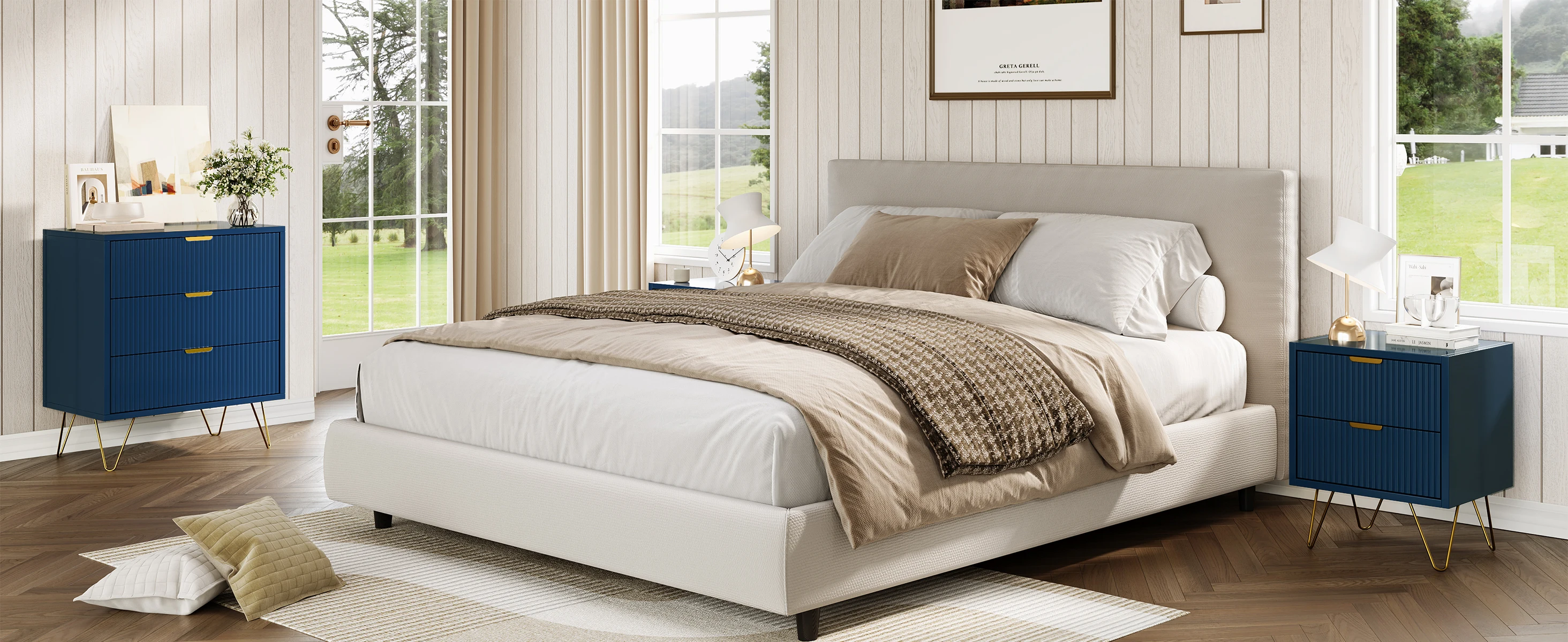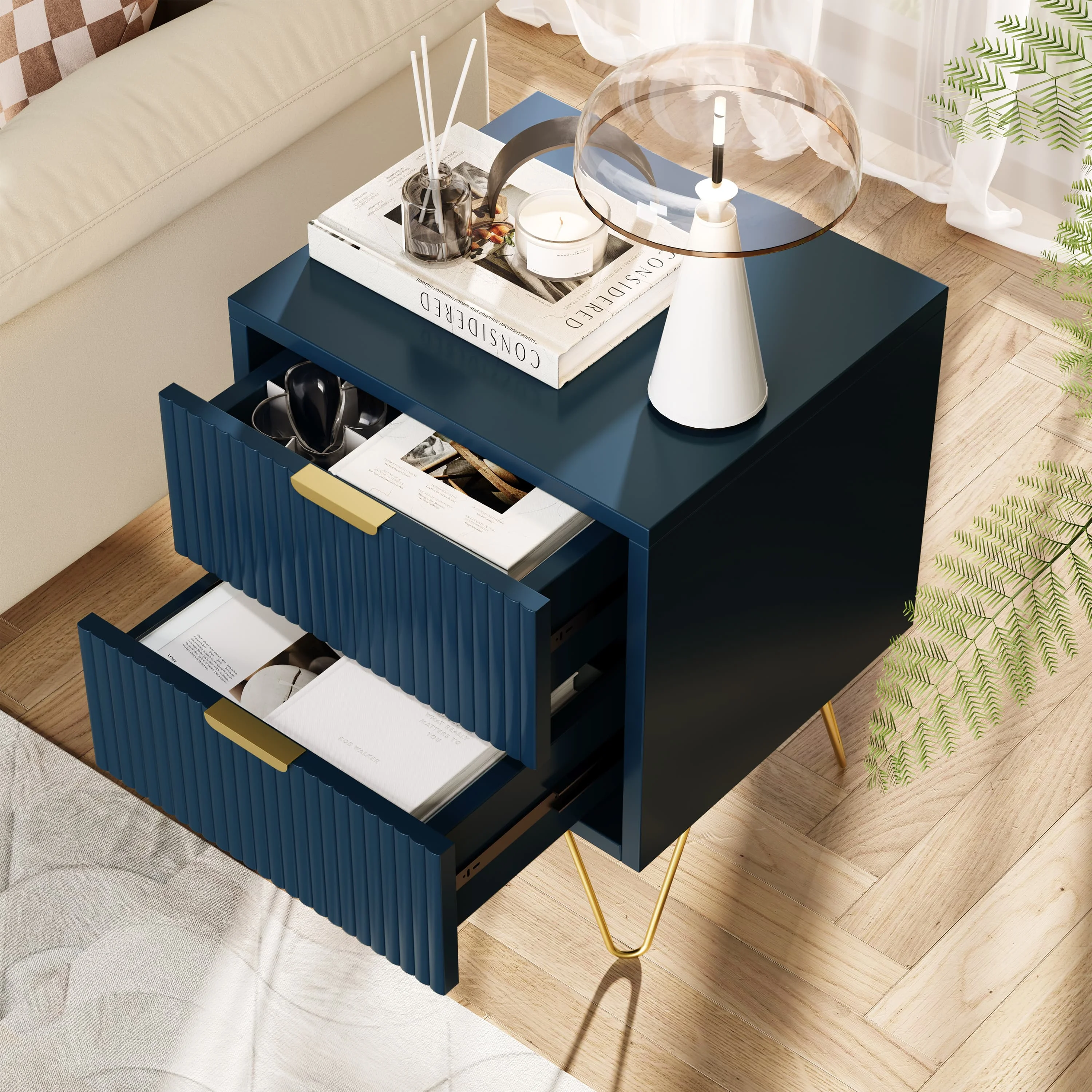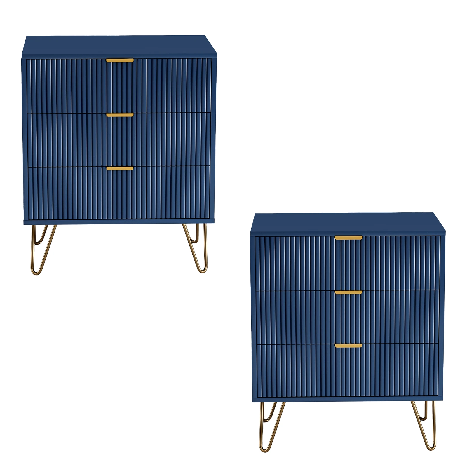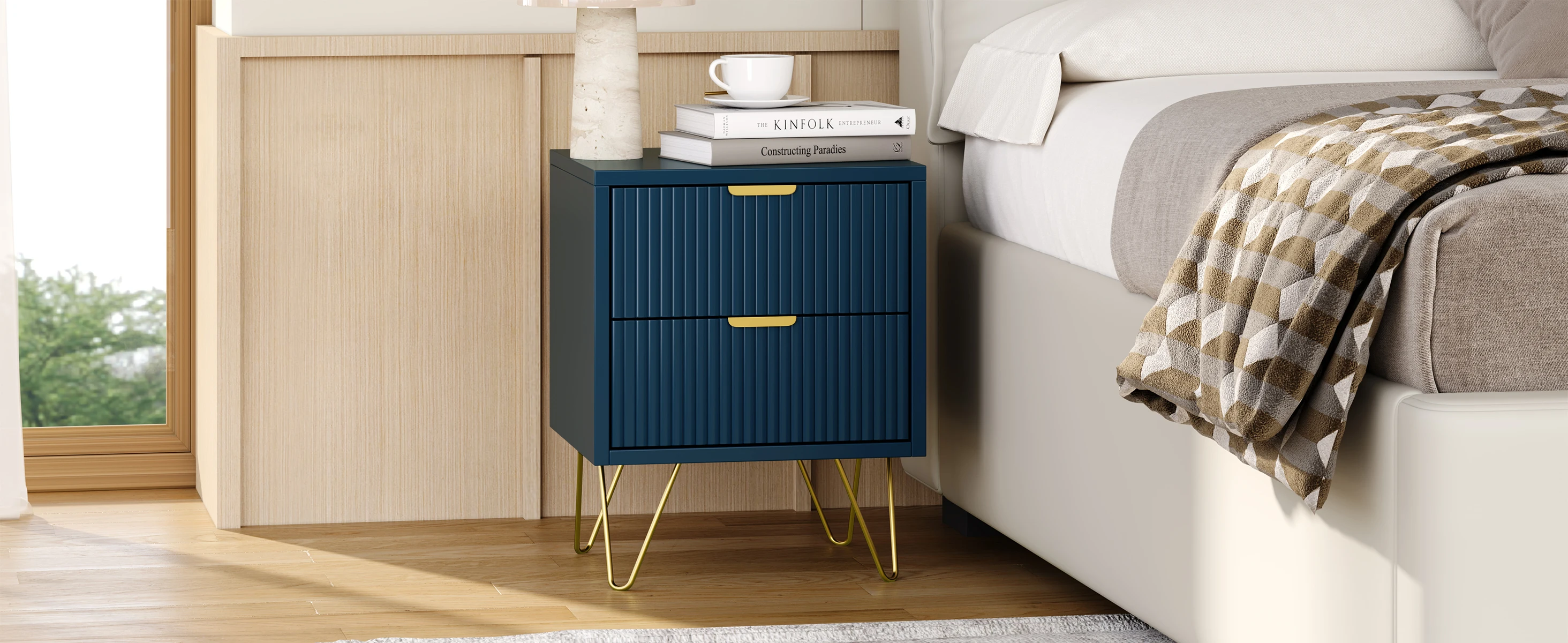 Современная эстетика:Эта прикроватная тумбочка имеет глубокую сине-белую цветовую палитру, создающую простой и элегантный дизайн.Нежная волнистая текстура подчеркивает безупречную отделку, а золотые ручки и ножки гармонично вписываются в ансамбль, привнося нотку изысканности в ваш внутренний декор.