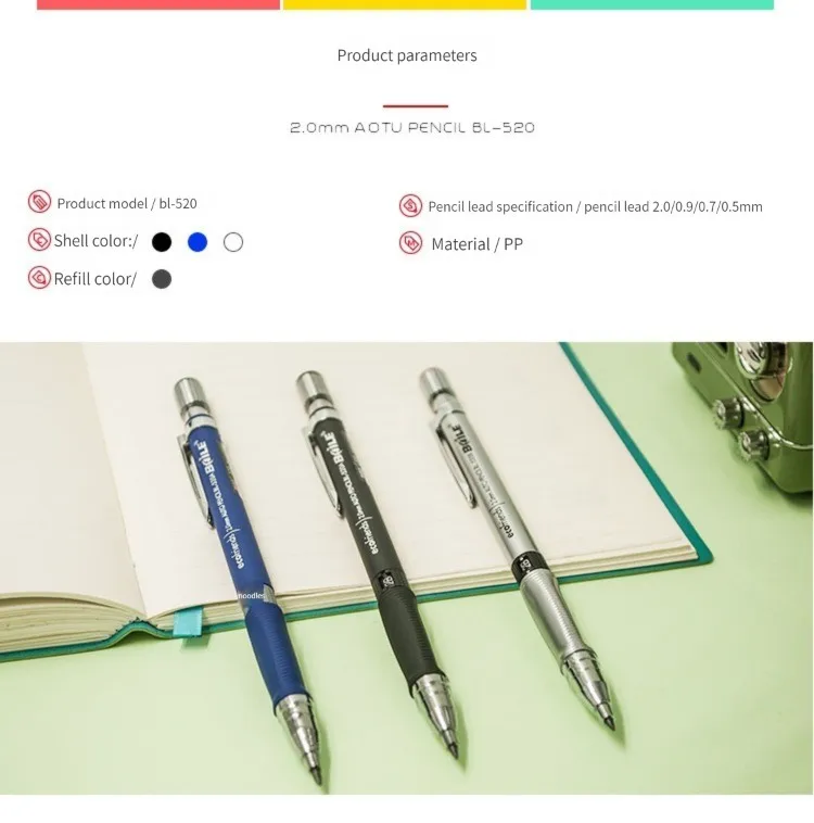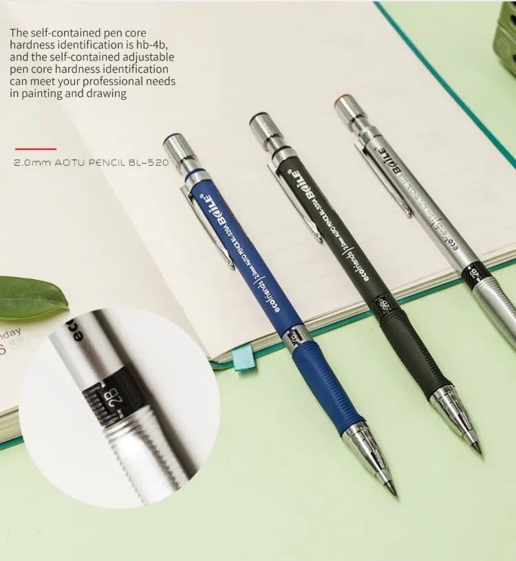 Набор механических карандашей 2 мм с цветным/черным грифелем, дизайн рисования, автоматический карандаш для письма, студенческий офисный школьный набор канцелярских принадлежностей