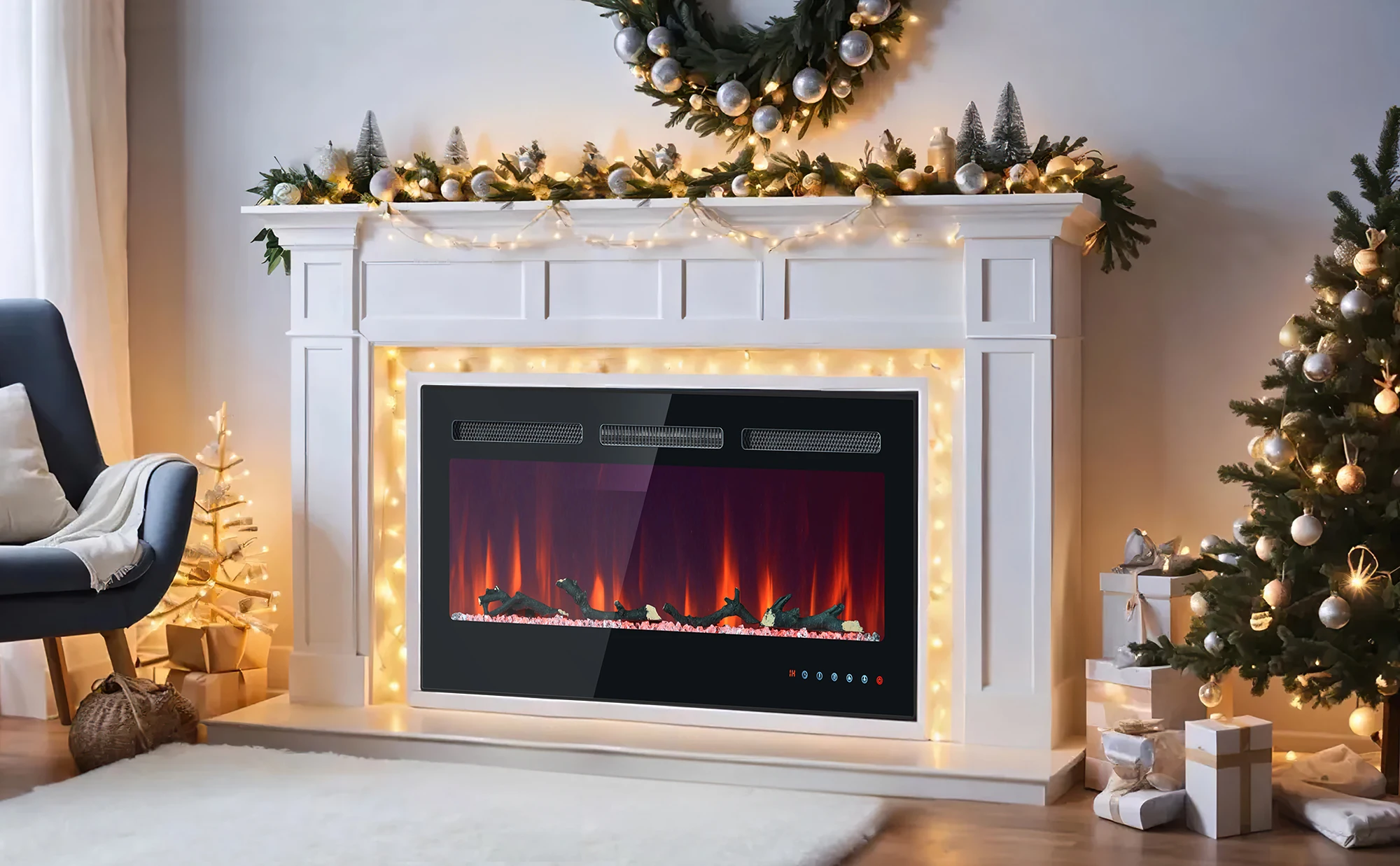 Настенные и встроенные электрические камины, 106,5×46,5×12 см, пульт дистанционного управления и сенсорный экран, 900/1800 Вт, 42 дюйма,