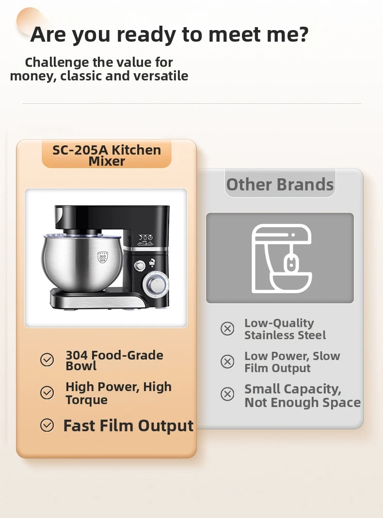 С сертификацией CE вы можете быть уверены в безопасности и качестве этого кухонного миксера, что обеспечивает спокойствие во время использования.