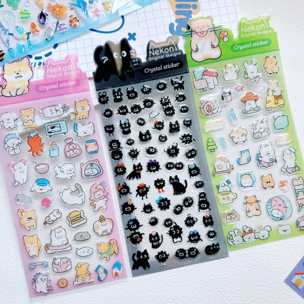 NEKONI креативные животные мультяшные хрустальные наклейки Скрапбукинг DIY журналы канцелярские принадлежности дневник милые наклейки школьные принадлежности