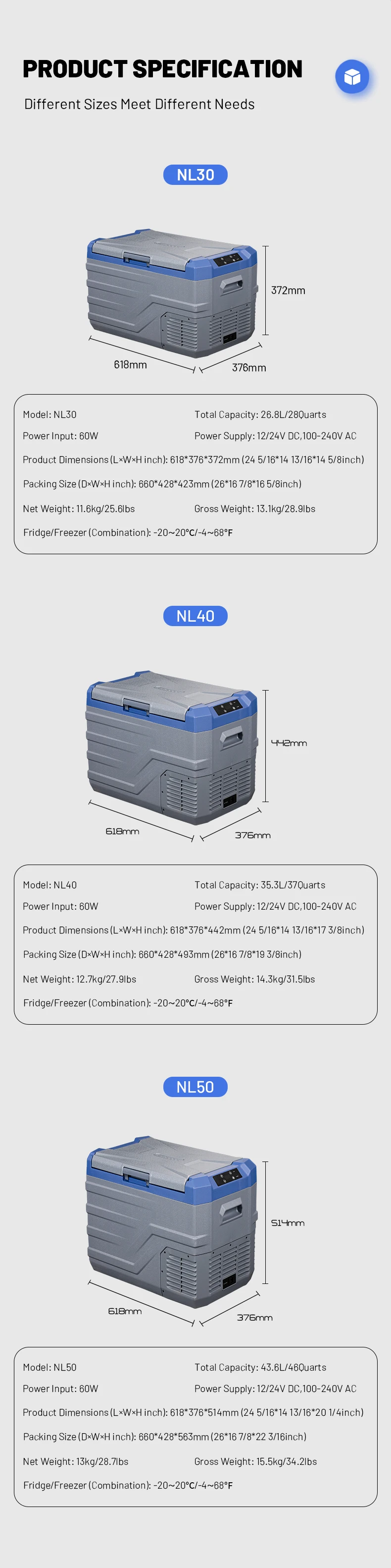 Nl30;NL40;NL50 Alpicool Холодильник для кемпинга Компрессор переменного/постоянного тока 12 В Автомобильный холодильник Портативный мини-холодильник Морозильники для улицы