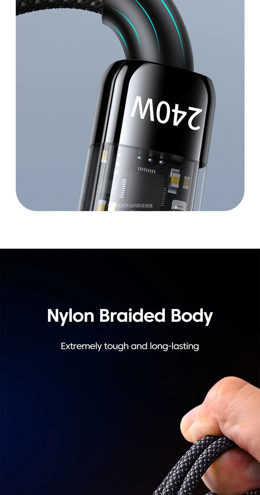 2.Зарядный кабель может поддерживать быструю зарядку мощностью до 240 Вт, но перед его использованием устройство также должно поддерживать зарядку мощностью 240 Вт, иначе оно не будет поддерживаться.