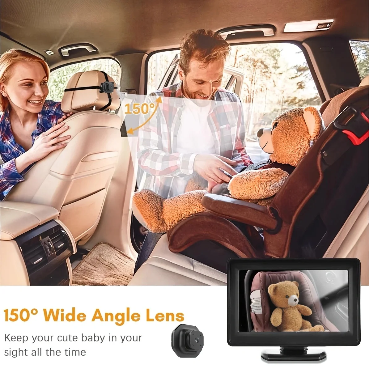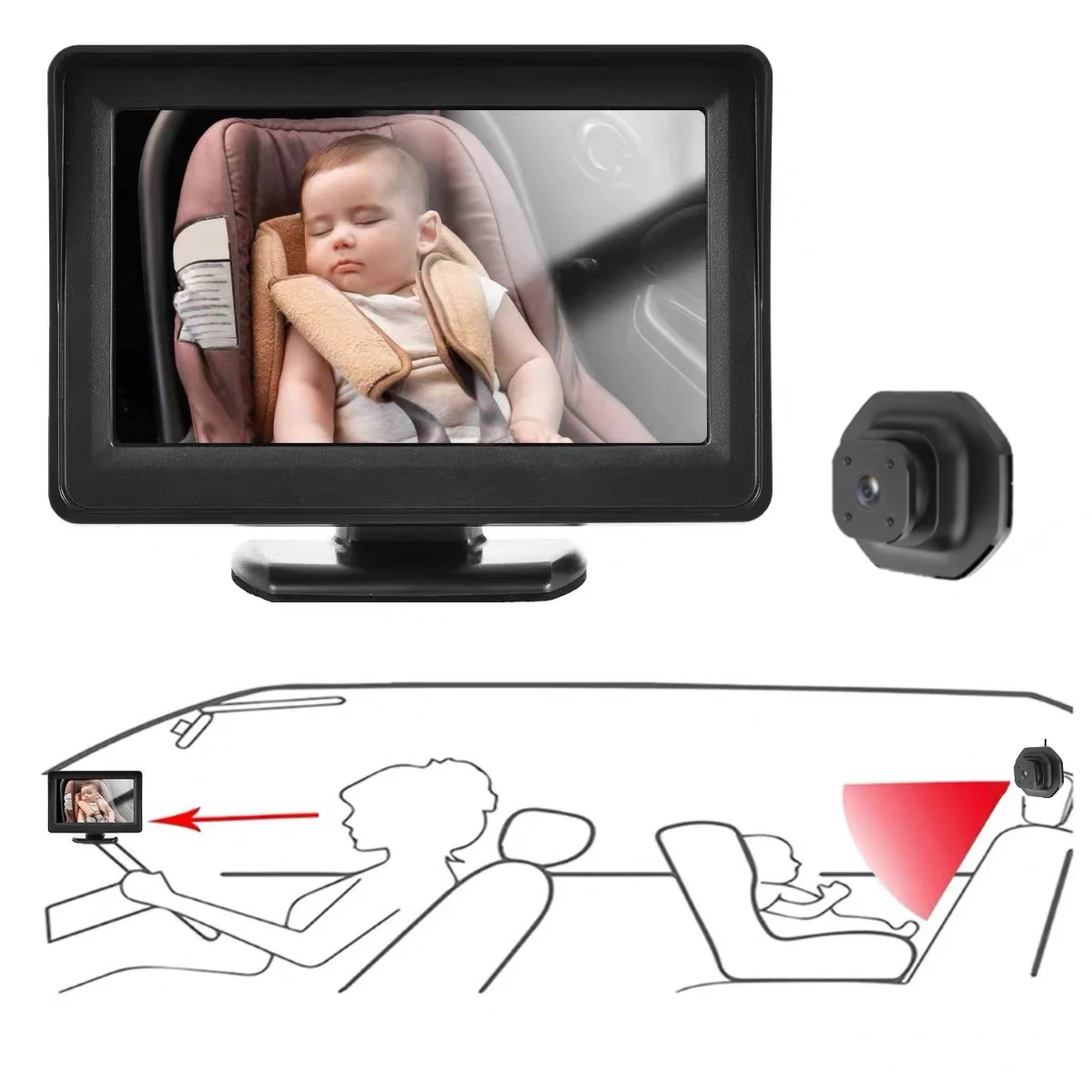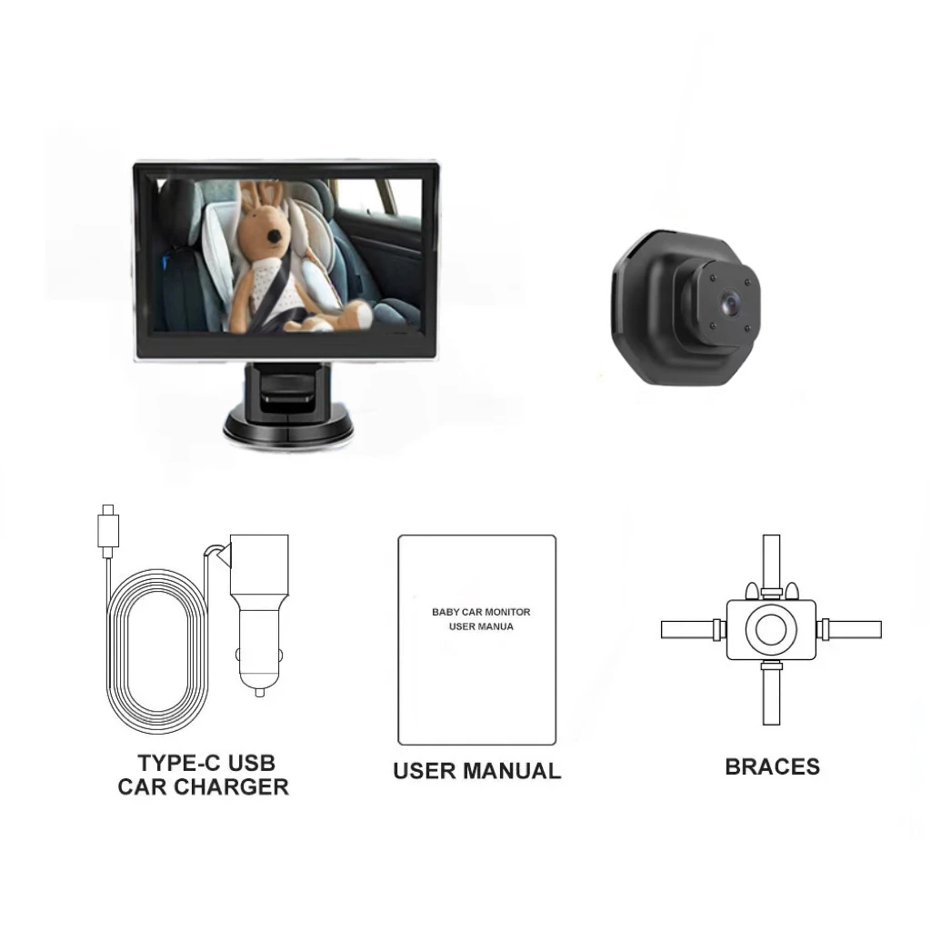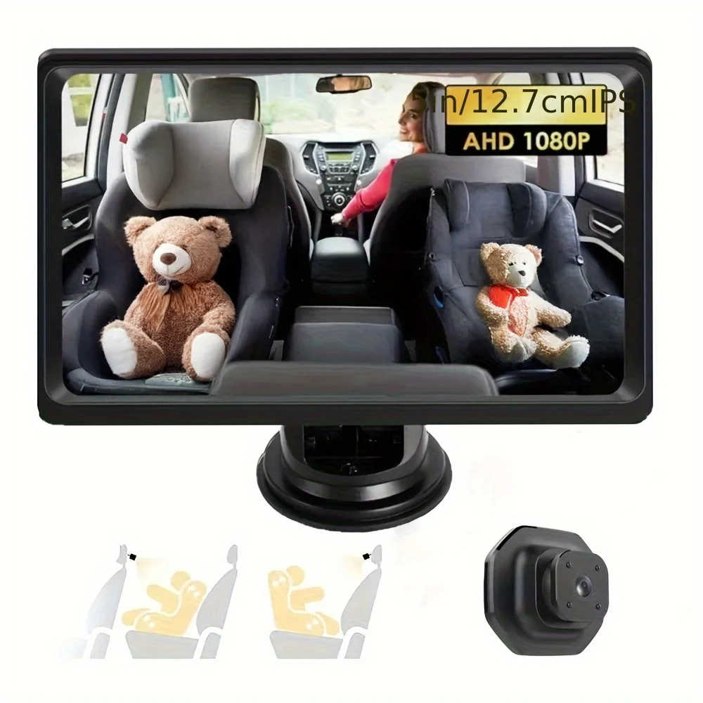 Новая автомобильная радионяня 1080P, 5-дюймовый большой экран высокой четкости IPS, 3 способа установки, регулируемая линза