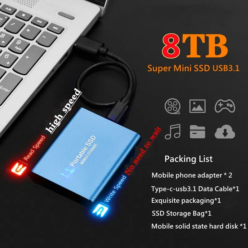 Новый внешний твердотельный накопитель 8 ТБ, 4 ТБ, 2 ТБ, мобильный твердотельный накопитель USB 3,1, внешний портативный жесткий диск Typec-C, настольный компьютер, ноутбук