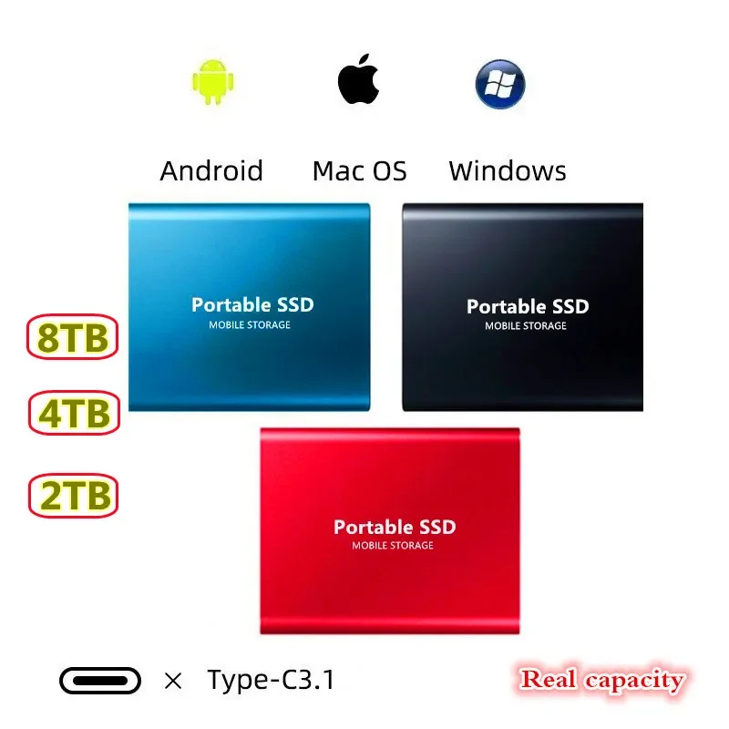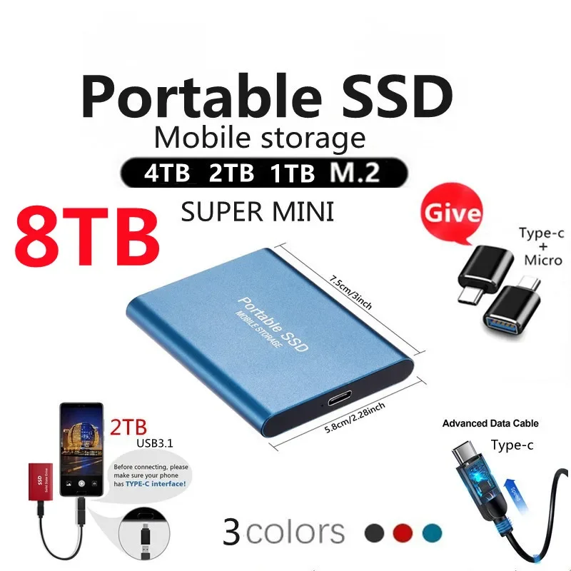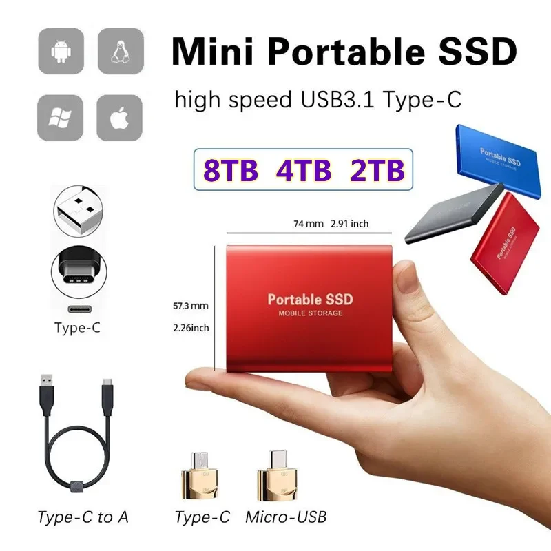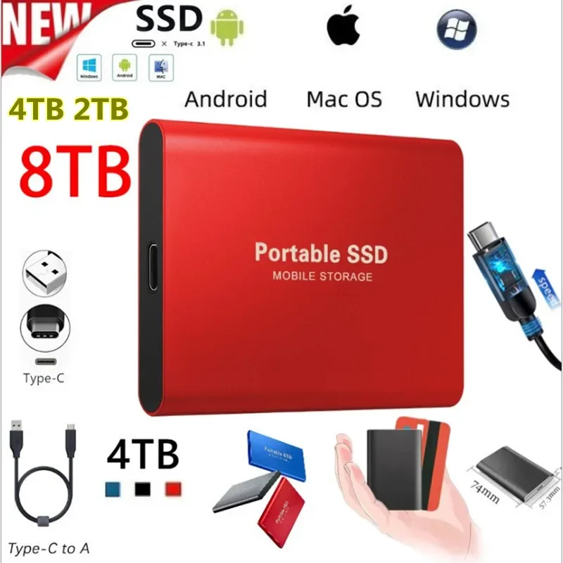 Новый внешний твердотельный накопитель 8 ТБ, 4 ТБ, 2 ТБ, мобильный твердотельный накопитель USB 3,1, внешний портативный жесткий диск Typec-C, настольный компьютер, ноутбук
