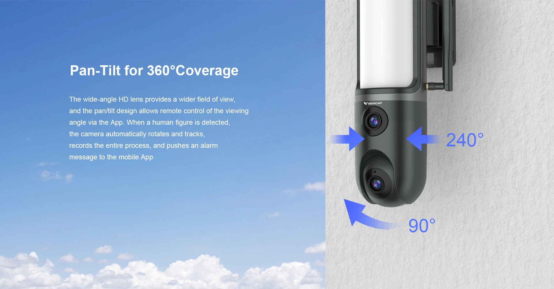 После фиксации цели камера автоматически регулирует поворот панорамирования и наклона.Отслеживайте движущиеся объекты, автомобили, домашних животных, людей и отправляйте push-уведомления на свой смартфон.