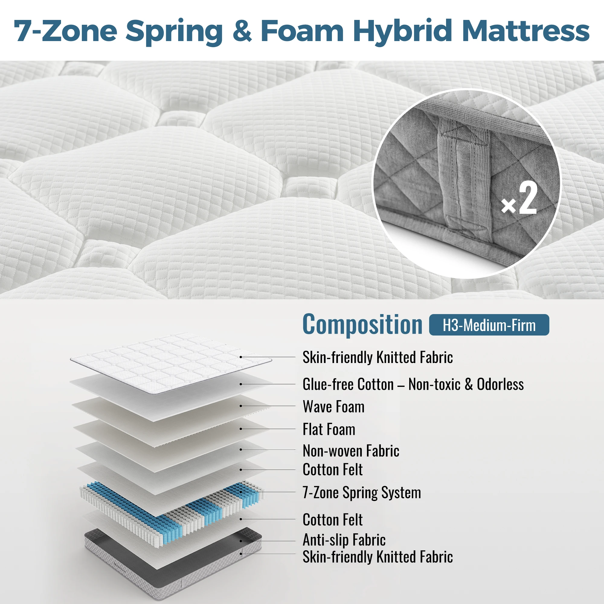 1.【Эргономичная 7-зонная ортопедическая поддержка】 7-зонная технология карманных пружин точно адаптируется к форме вашего тела, обеспечивая целенаправленную поддержку шеи, плеч, поясничного отдела позвоночника, таза и ног.Матрас со средней твердостью (H3) идеально подходит для комфортного сна и оптимального расслабления.