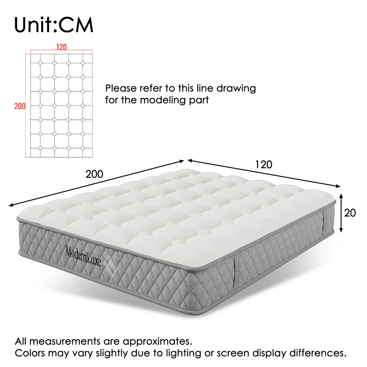 Ортопедический матрас из холодной пены 120х200 см, матрас с 7-зонным пружинным сердечником, уровень жесткости H3 (средний подтверждение), высота 20 см.
