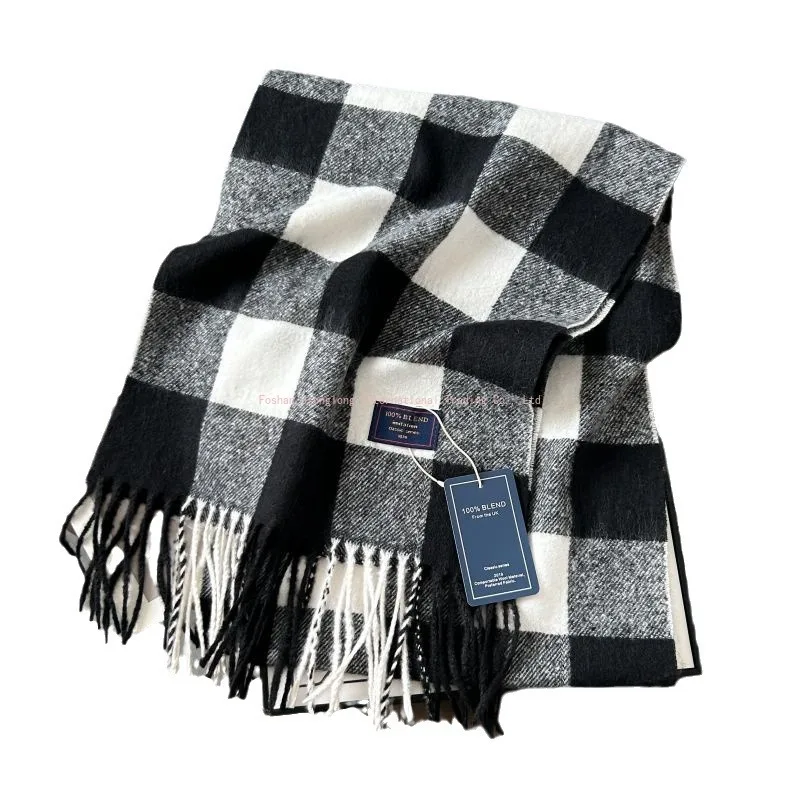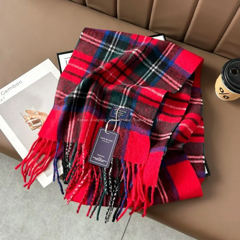 Осенне-зимний классический элитный шарф в клетку с принтом для пар, теплый шарф с текстурой австралийской искусственной шерсти